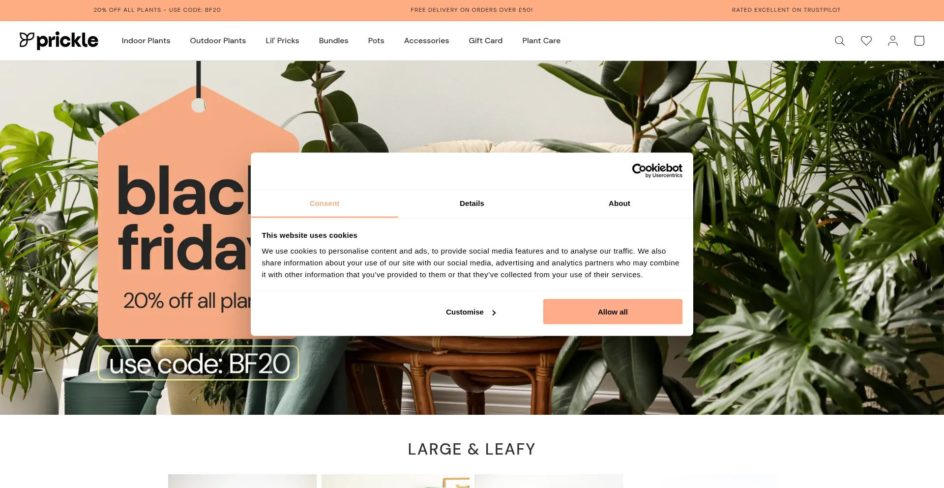 Die Website implementiert Cookie-Zustimmungsmechanismen in Compliance mit Datenschutzregulierungen wie DSGVO oder CCPA. Dies demonstriert, dass prickleplants.co.uk Datenschutzstandards einhält und Benutzern Kontrolle über persönliche Datenerfassungspraktiken bietet.