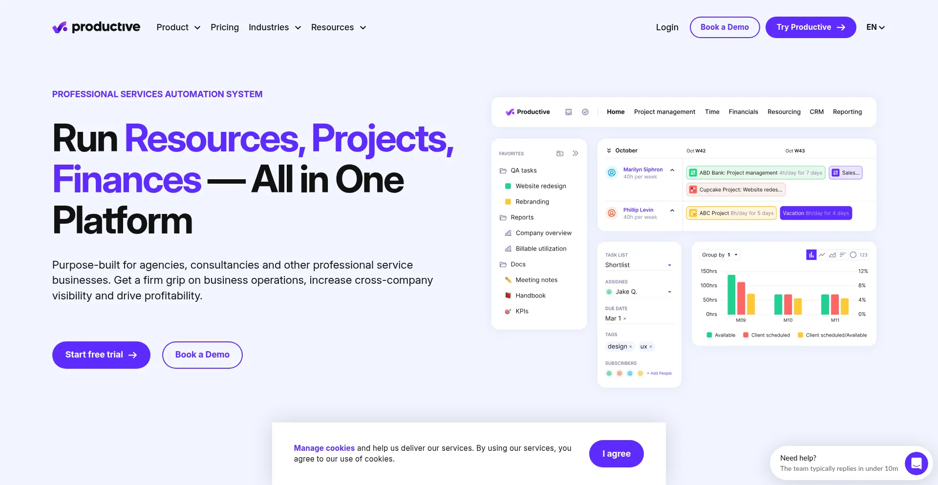 Run resources, projects, and finances in one platform. Productive helps agencies and consultancies streamline operations, boost visibility, and drive profitability.