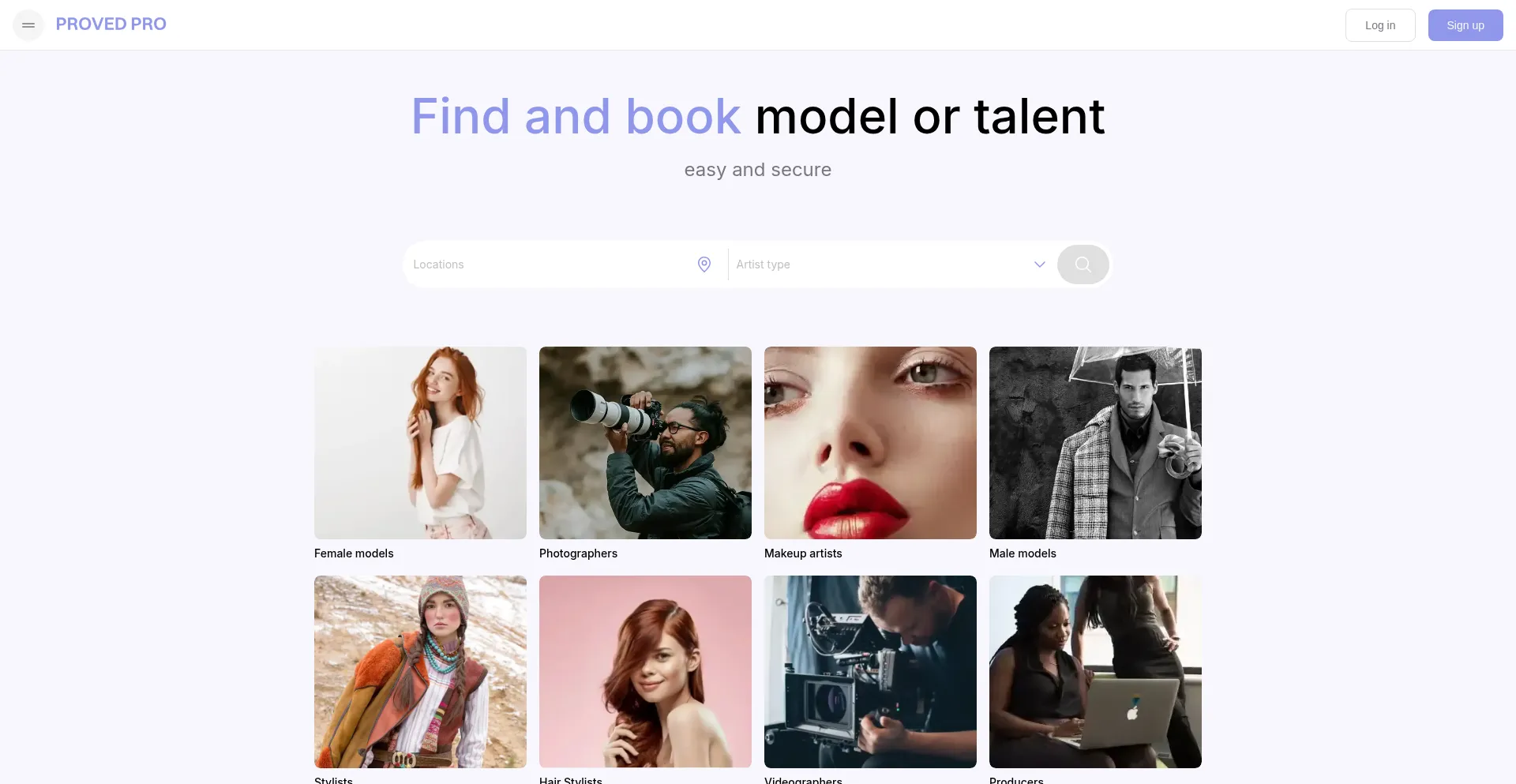 Proved Pro. Find and book model or talent