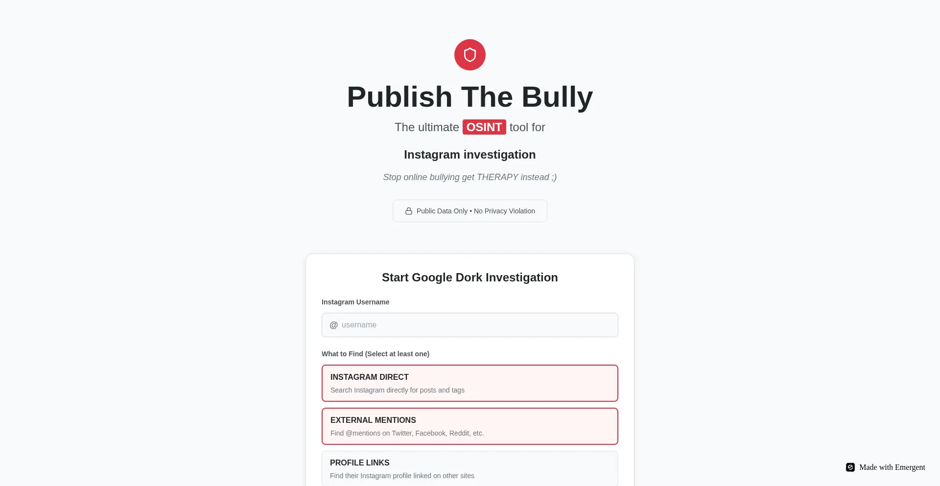 Publish The Bully - OSINT Investigation Tool