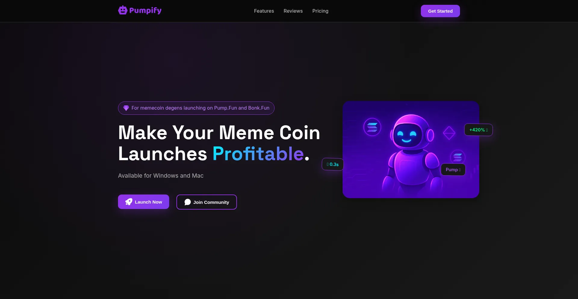 The fastest meme coin tools on Solana. Copy elite traders, use MEV strategies, and make your launches profitable with Pumpify bot.