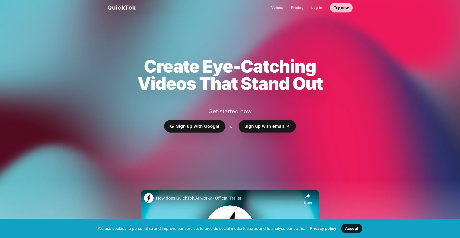Die Website implementiert Cookie-Zustimmungsmechanismen in Compliance mit Datenschutzregulierungen wie DSGVO oder CCPA. Dies demonstriert, dass quicktok.ai Datenschutzstandards einhält und Benutzern Kontrolle über persönliche Datenerfassungspraktiken bietet.