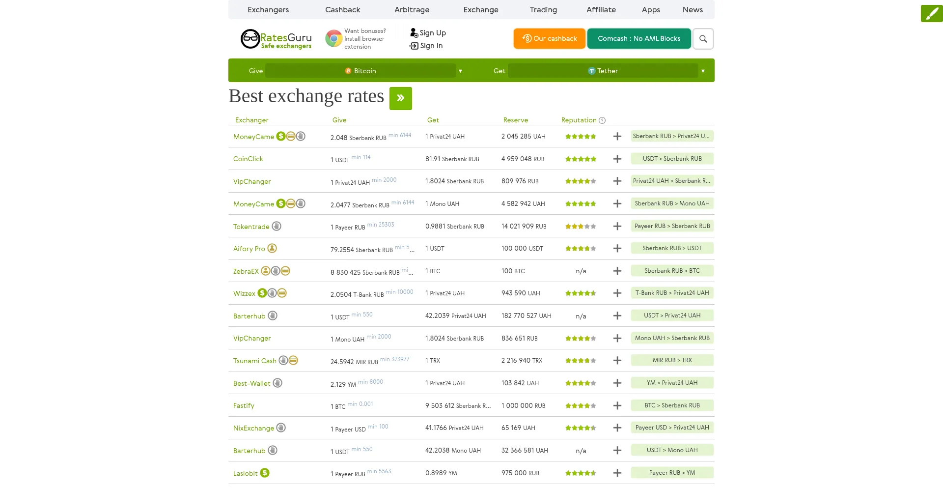 Best rates and safe exchangers from RatesGuru