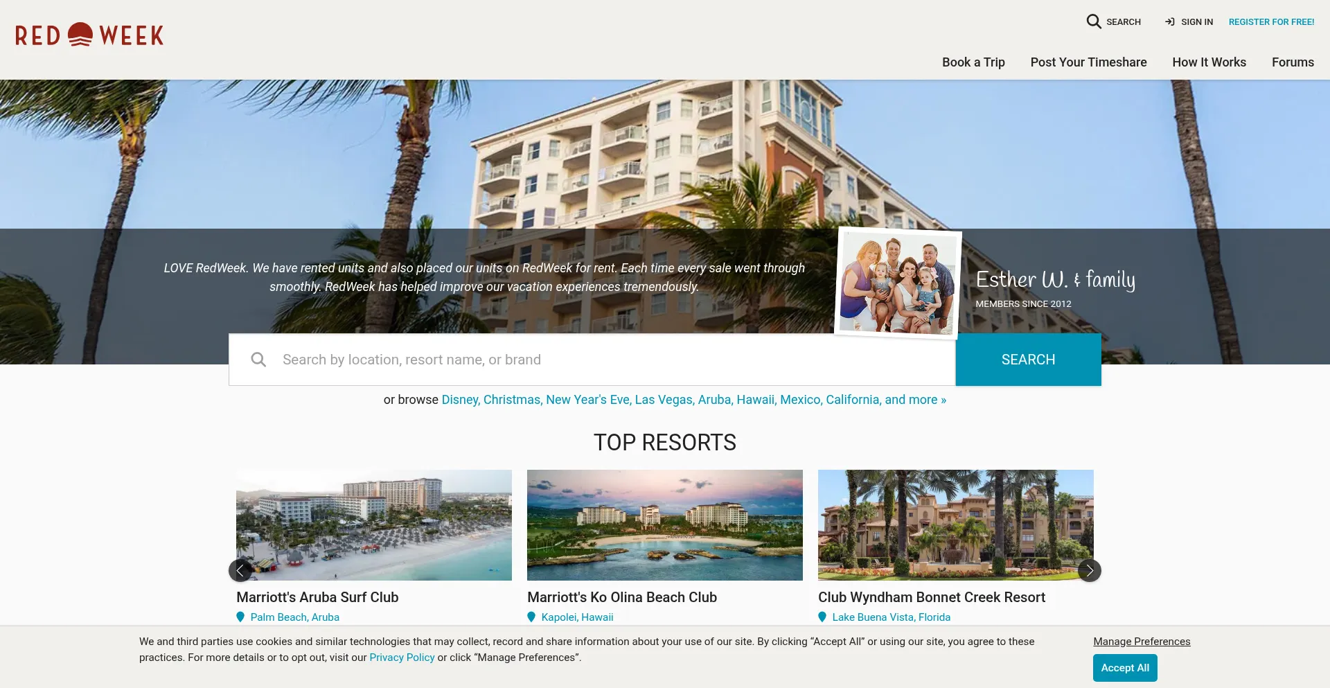 Explore timeshares for rent and sale by owner on RedWeek, the world's largest timeshare marketplace. Get resort info, reviews, and join timeshare forums.
