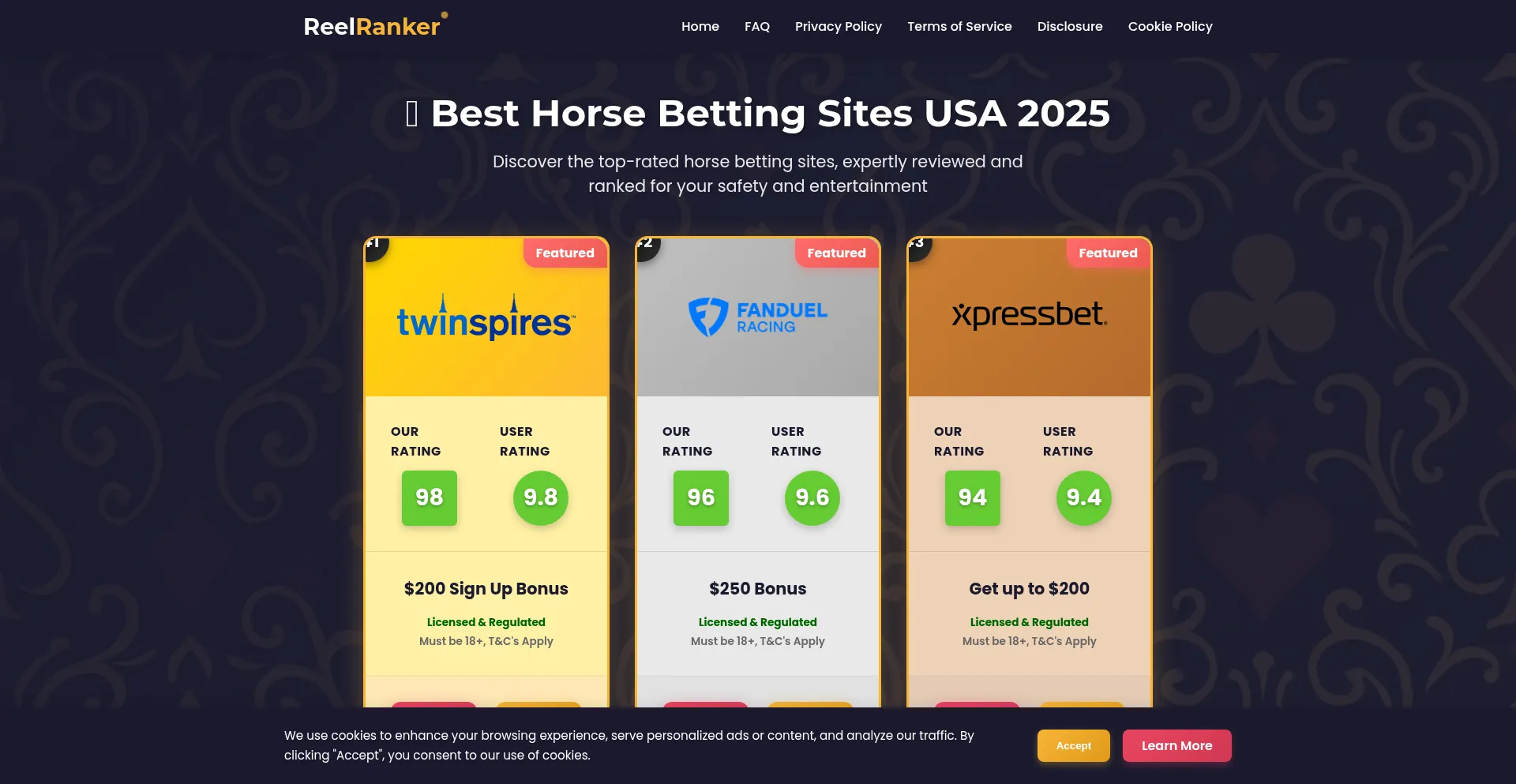 Find the best horse betting sites with detailed reviews, ratings, and bonuses at Reel Ranker - your trusted guide to horse betting sites.