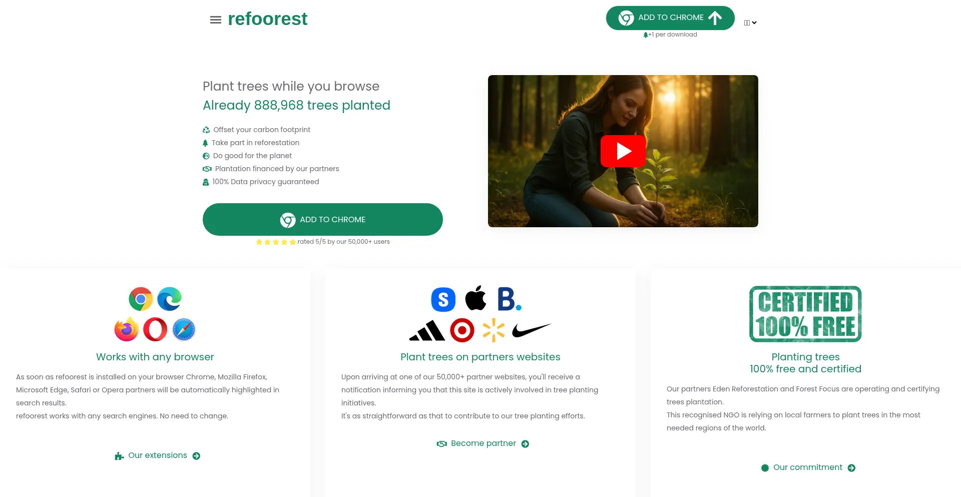Plant trees for free while browsing with refoorest