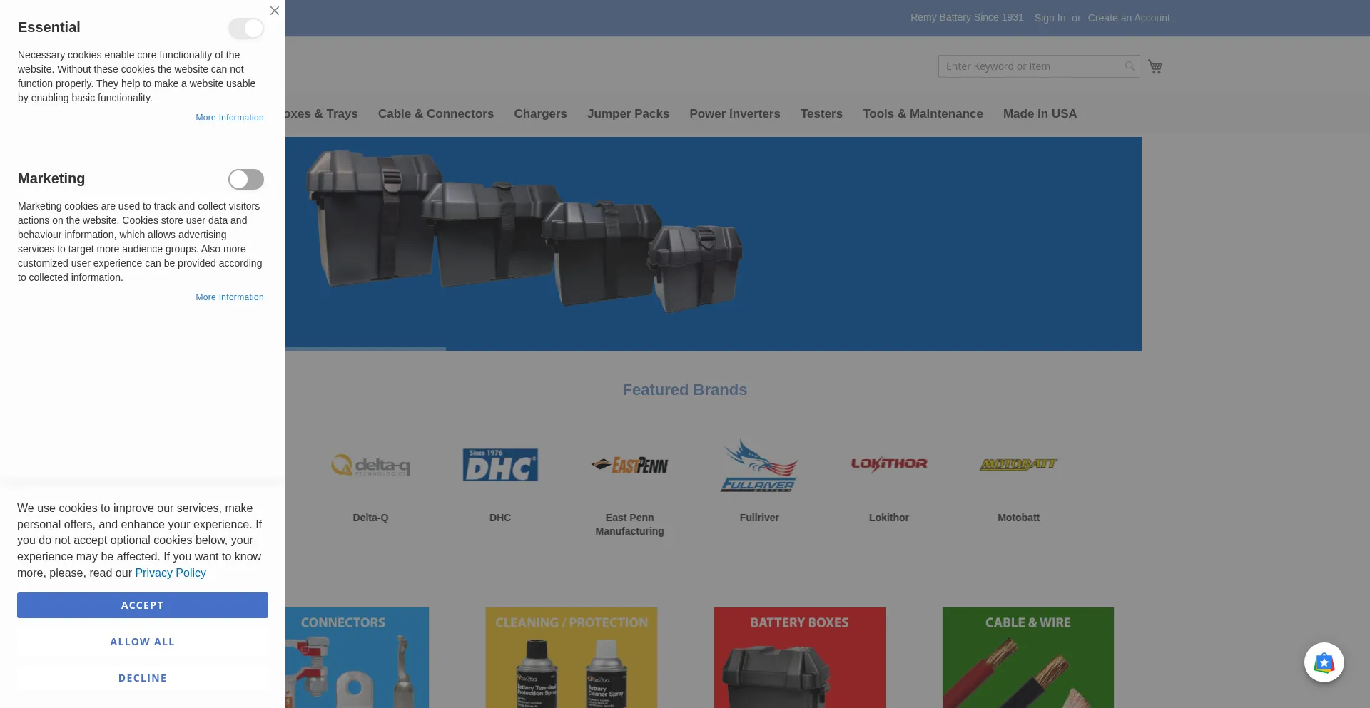 Remy Battery, family owned and operated since 1931. Shop batteries, chargers, cable, connectors, jumper cables, jump starter packs nearly anything battery or battery related.