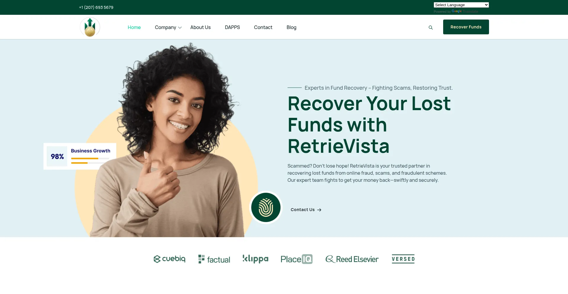 Die Website retrievista.com bewirbt Fondswiederherstellungsdienste für verlorene oder gestohlene Vermögenswerte. Während einige auf Erfolgshonorarbasis operieren, können andere Vorauszahlungen erfordern, was auf betrügerische Operationen hinweisen kann. Verifizieren Sie Anmeldeinformationen und regulatorische Compliance, bevor Sie solche Dienste in Anspruch nehmen.