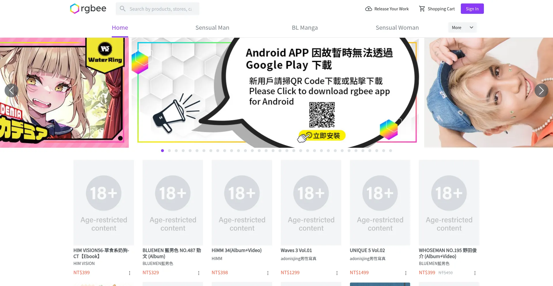 Check original photography, manga, video with free previews for high quality images and videos, online shopping for your private collection in app
