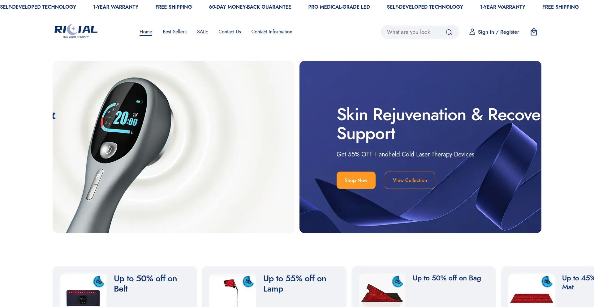 Achieve healthier skin and a revitalized body with RICIAL red light and happy light therapy devices. Reduce wrinkles, fine lines, inflammation, and joint discomfort with safe, e...