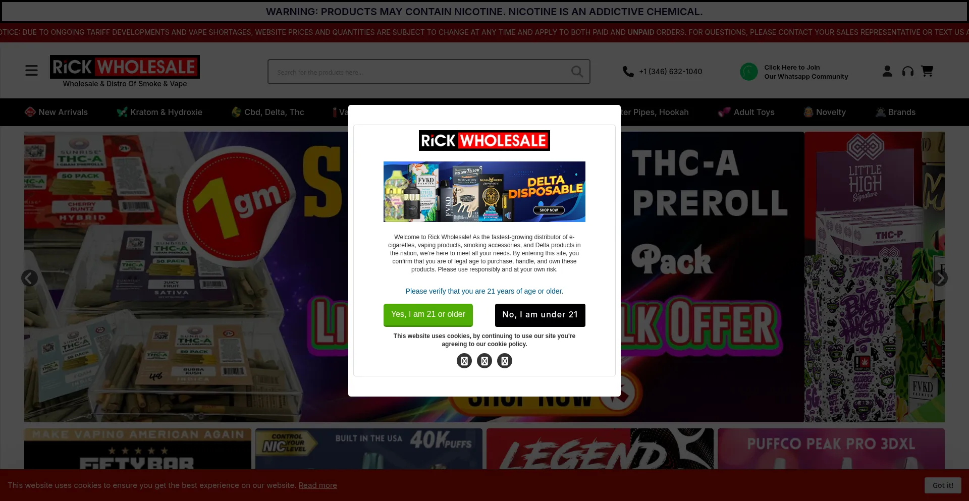 Rick Wholesale - Leading Distributor of Smoke, Vape, Delta 8, THCA, Kratom, Hydroxy 7OHM, Vape Disposables, E-Liquids, Vaporizers & More! Get the Best Wholesale Prices on Top-Qu...