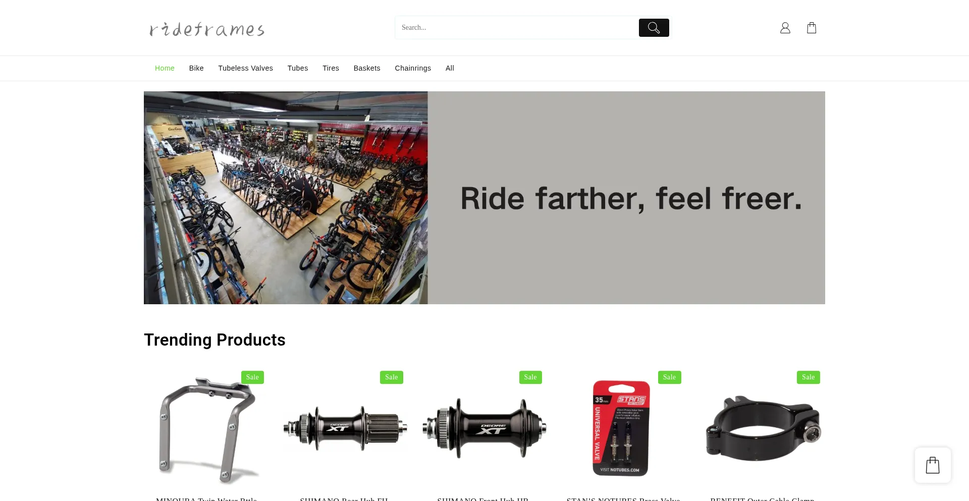 Choose from mountain, road, commuter, and electric bikes, frames, wheels, tires, drivetrain systems, brakes, pedals, handlebars, saddles, helmets, gloves, shoes, apparel, lights...