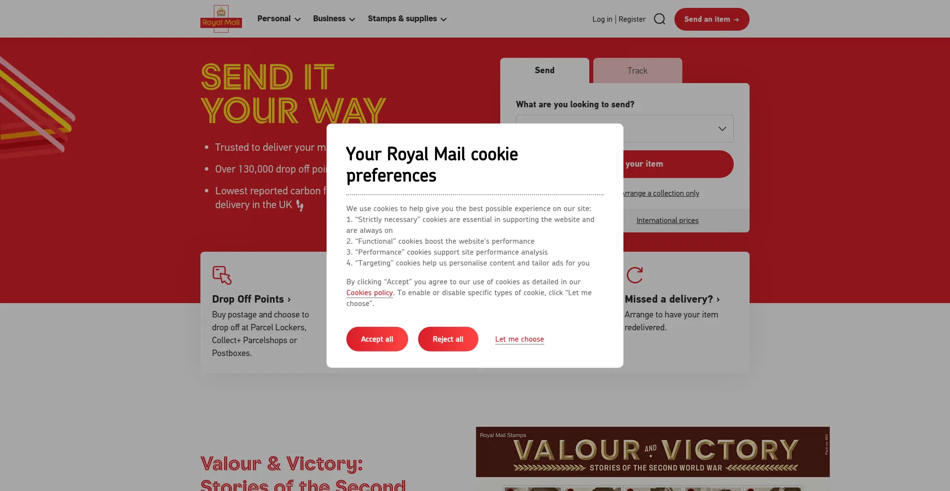 Die Website implementiert Cookie-Zustimmungsmechanismen in Compliance mit Datenschutzregulierungen wie DSGVO oder CCPA. Dies demonstriert, dass royalmail.com Datenschutzstandards einhält und Benutzern Kontrolle über persönliche Datenerfassungspraktiken bietet.