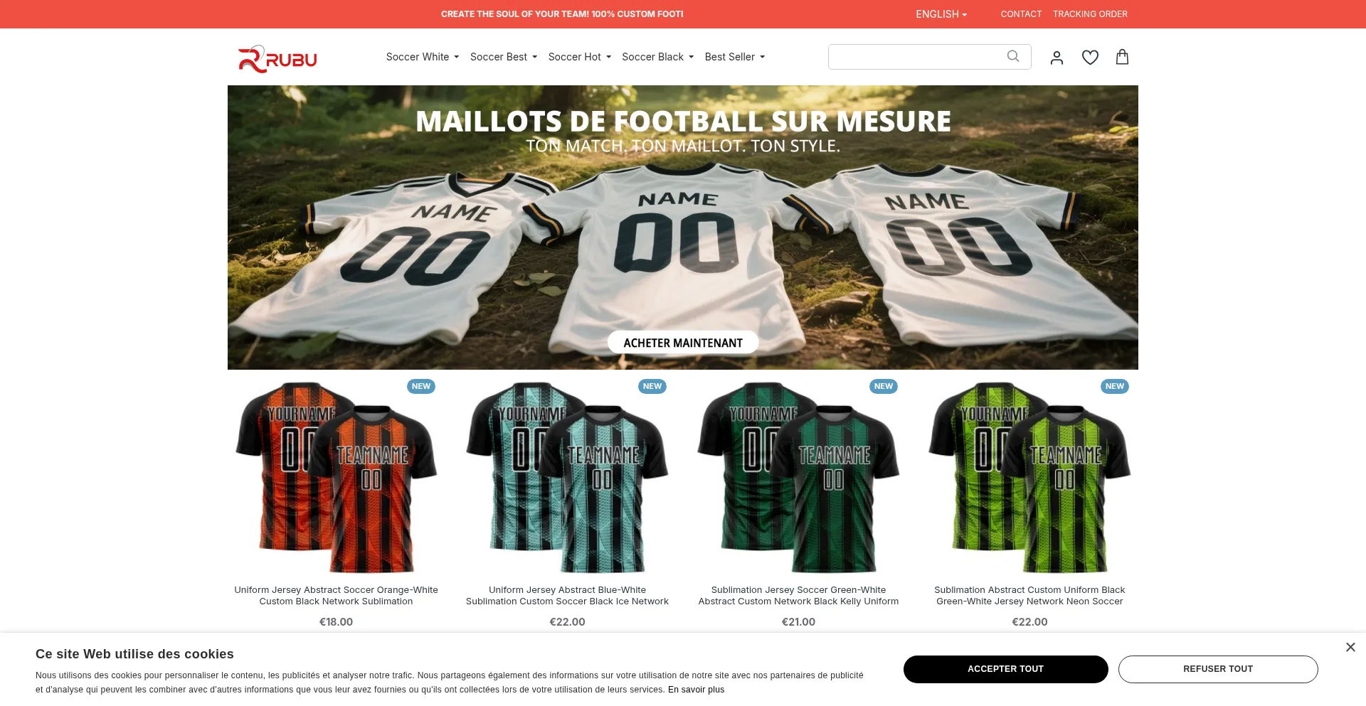 Concevez des maillots de football sur mesure avec notre configurateur 3D. Tissus techniques professionnels, impression haute qualité et livraison rapide en France. Personnalise...