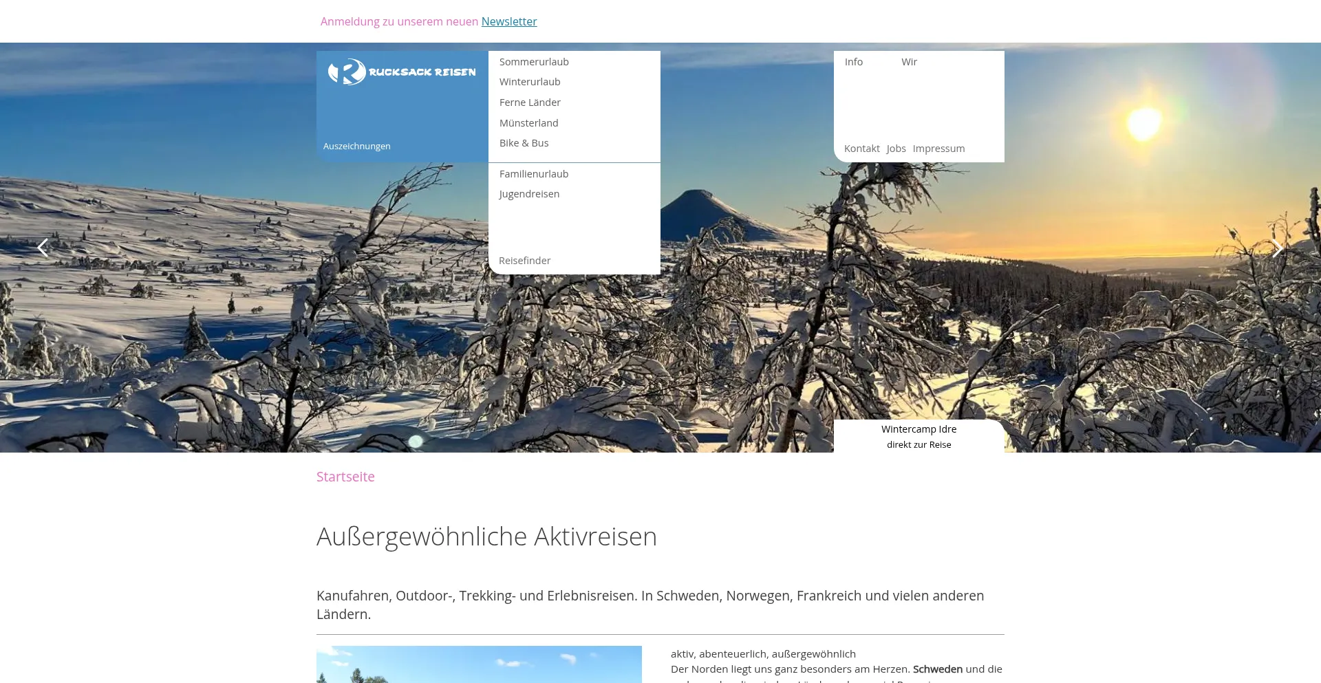 Kanu, Rad, Trekking und Familienreisen: Aktivreisen mit Schwerpunkt in Schweden, Norwegen, Irland und Frankreich. Winter: Huskytouren, Langlauf und Schneeschuhwandern.