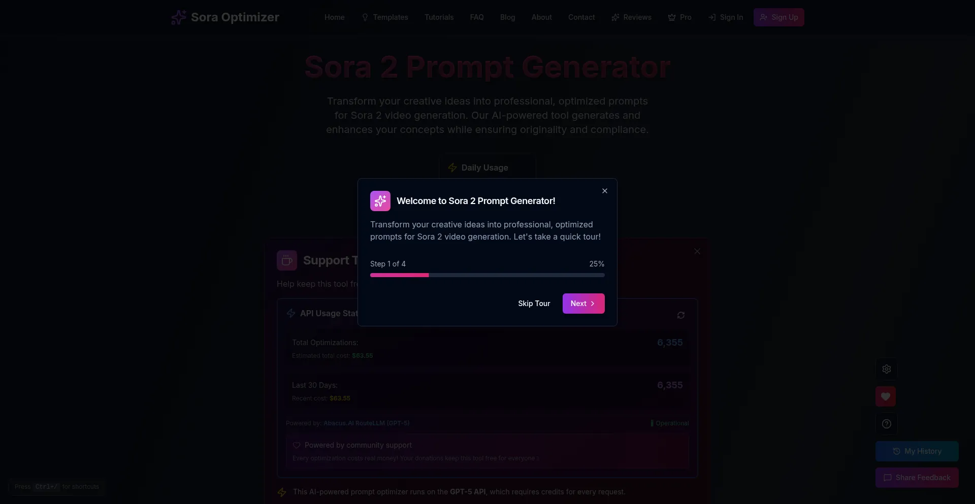 Transform your creative ideas into professional, optimized prompts for Sora 2 video generation. Free AI-powered prompt generator with advanced cinematography, safety optimizatio...