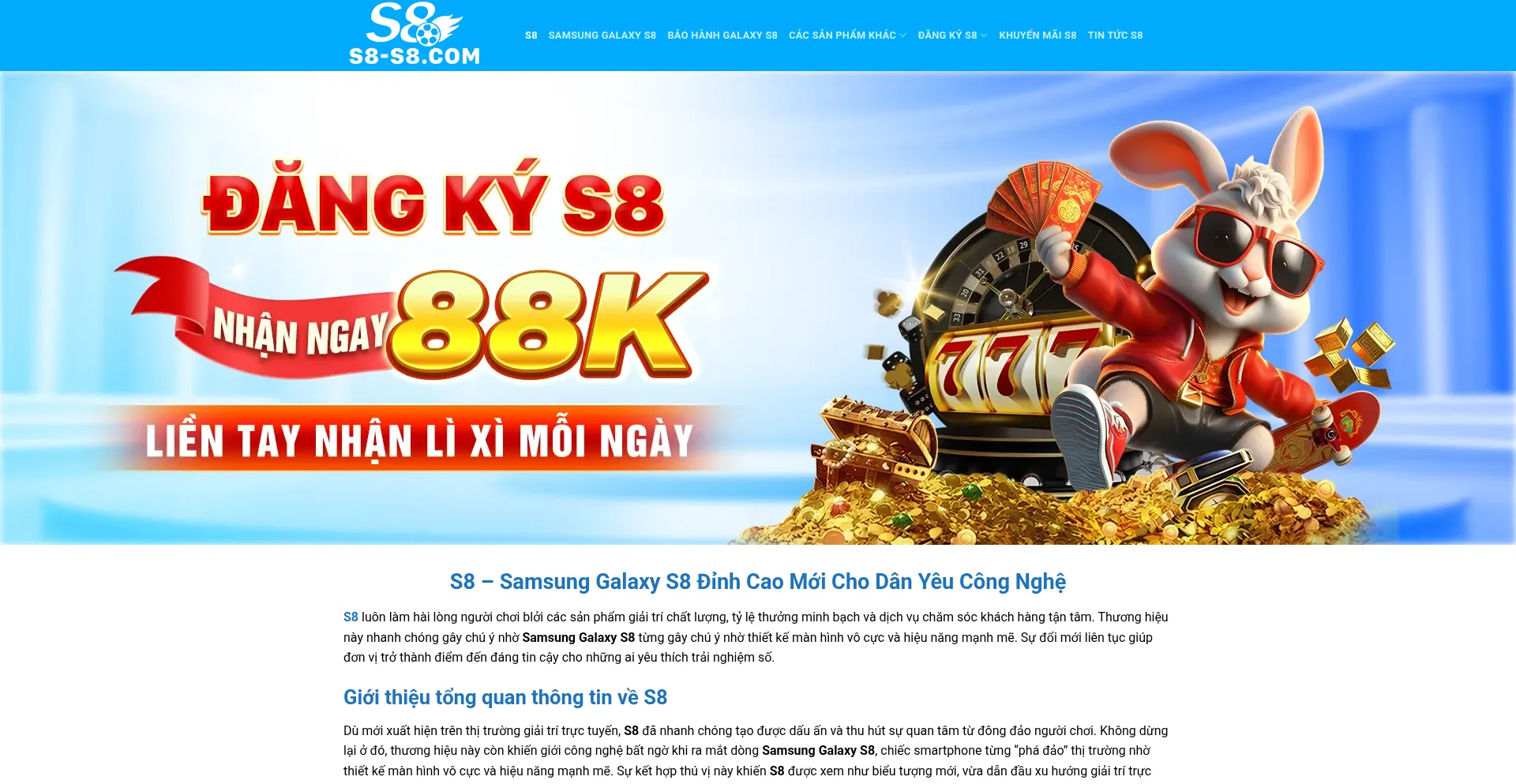 S8 là điểm đến giải trí trực tuyến uy tín, mang đến kho game đa dạng, tỷ lệ minh bạch và dịch vụ chăm sóc khách hàng tận tâm cho mọi ng�...