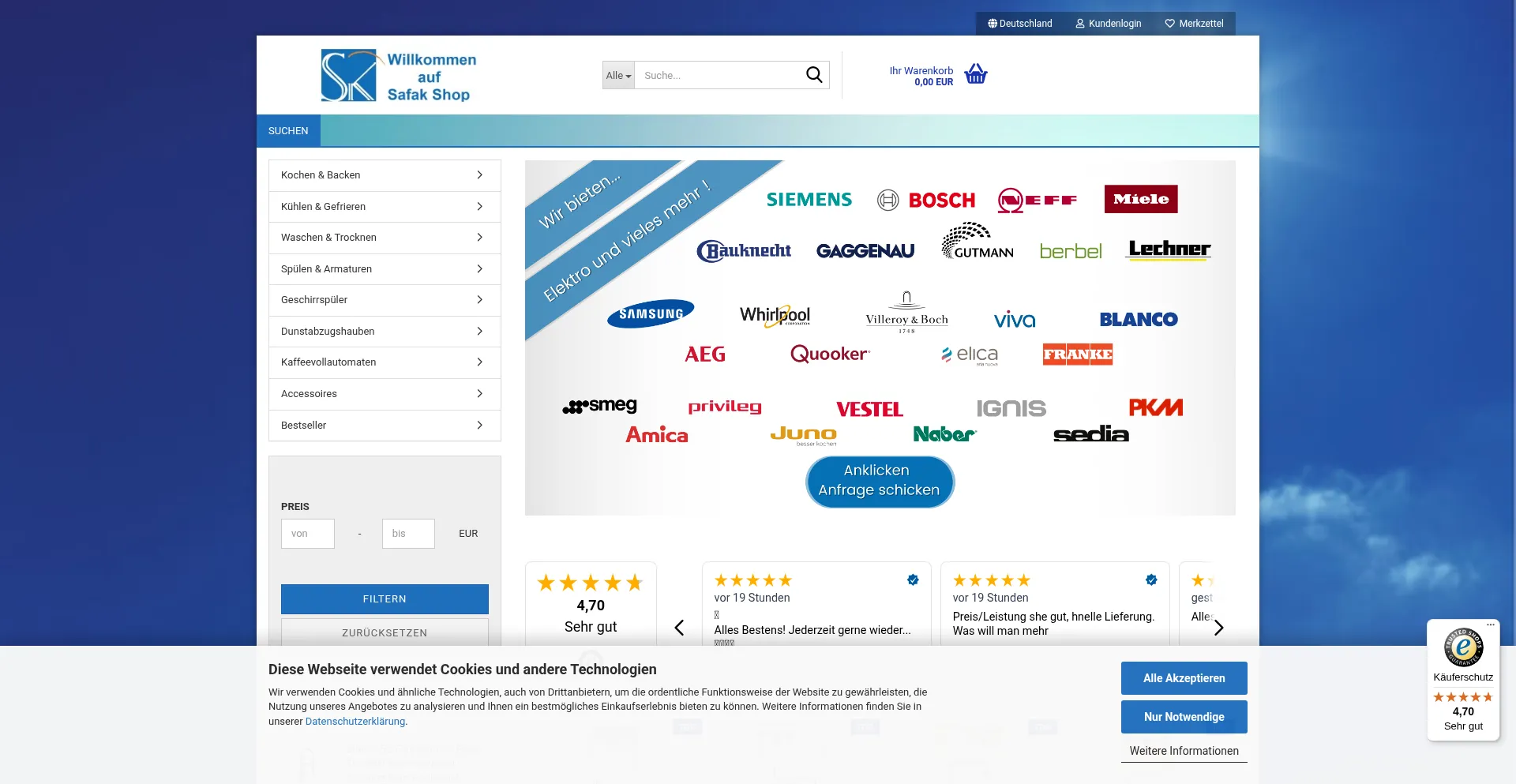 Safakshop - Haushaltsgeräte sofort Versandbereit Einbau und Standgeräte. Spülen und Armaturen zum Bestpreis. - Safakshop - Haushaltsgeräte sofort Versandbereit Einbau und Standgeräte. Spülen und Armaturen zum Bestpreis.