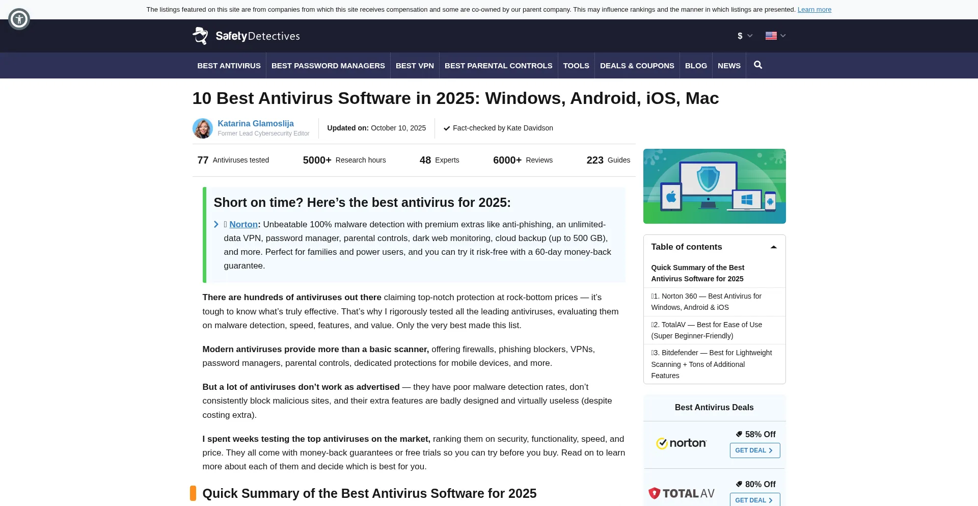 10 Best Antivirus Software in 2025: Windows, Android, iOS, Mac