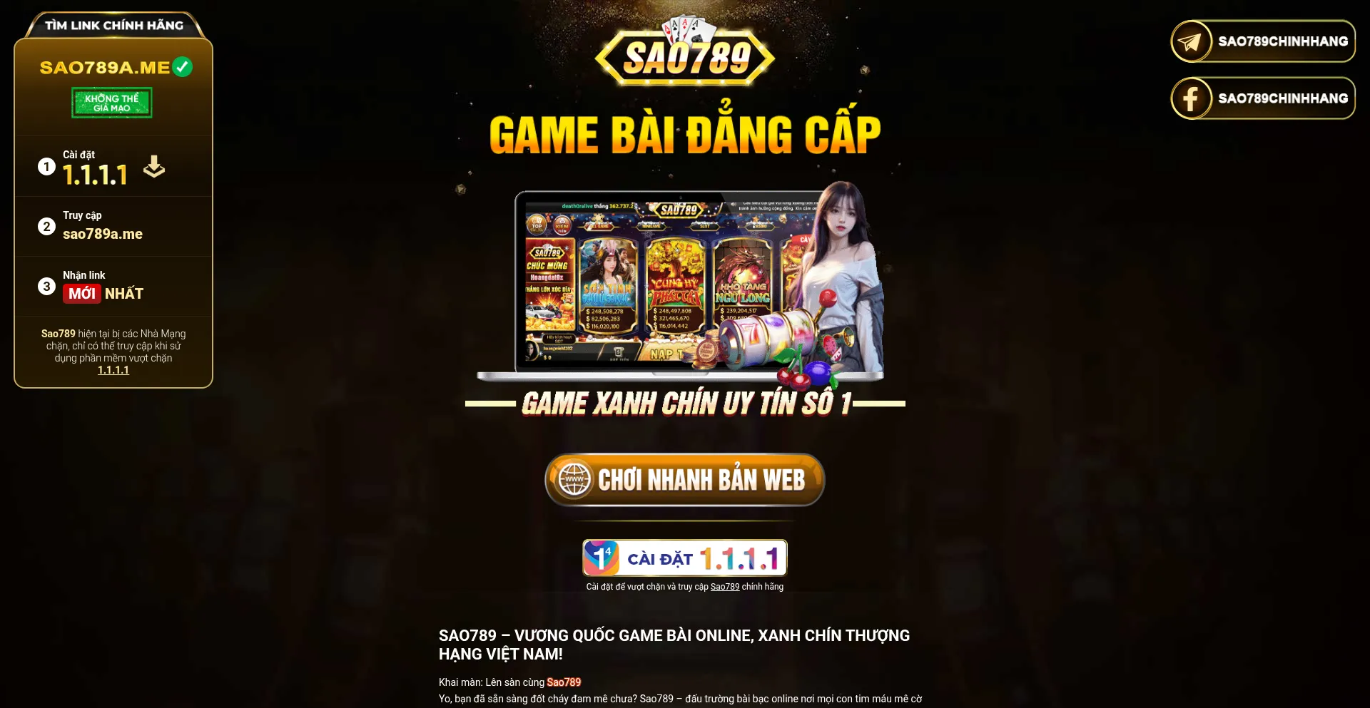 Sao789 là cổng game bài đổi thưởng tiền thật, chơi bài online, với giftcode hấp dẫn, được cập nhật thường xuyên - Đăng ký tài khoản chín...