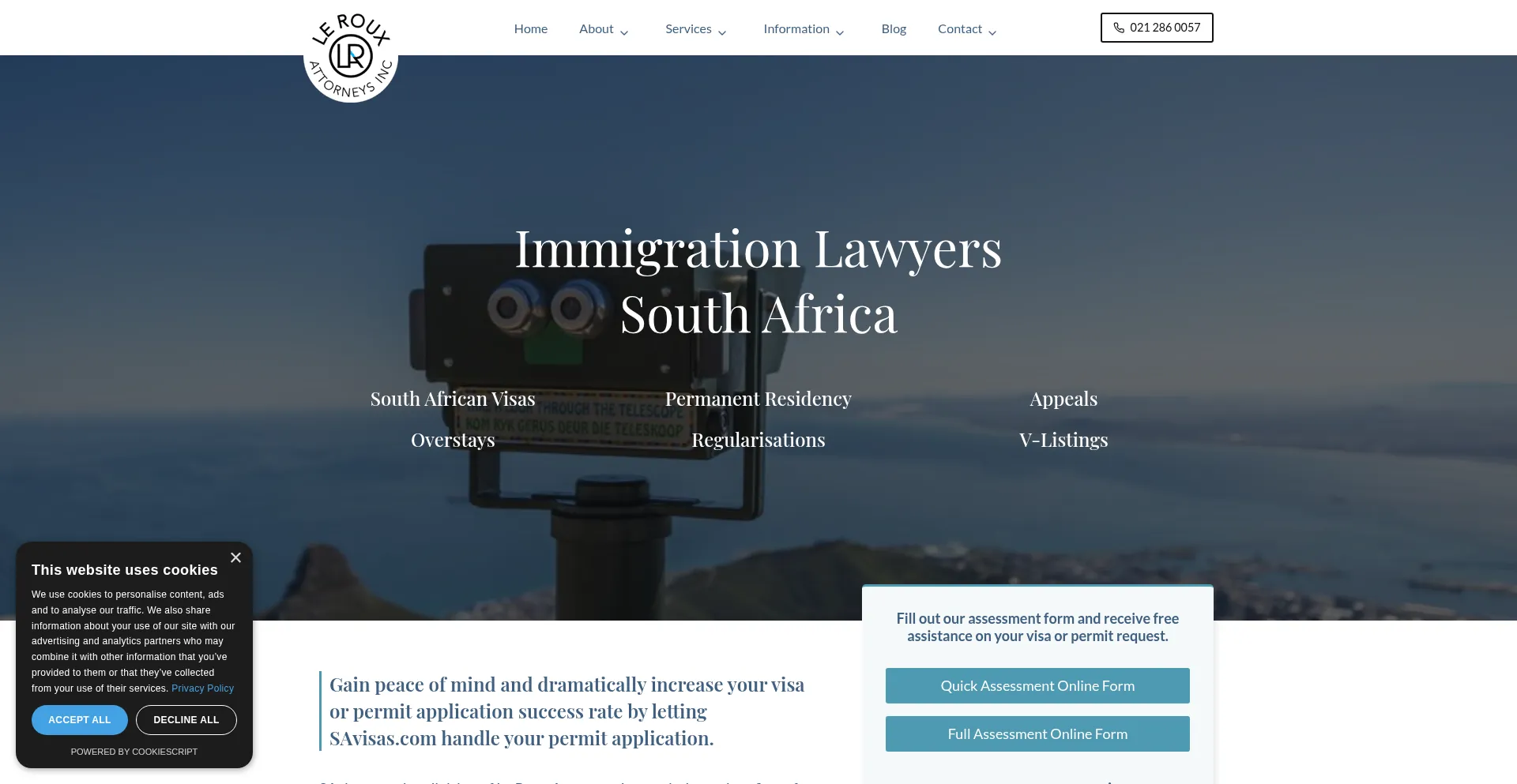 SAvisas.com is a division of Le Roux Attorneys Inc., an independent firm of immigration lawyers in South Africa, offering litigation and commercial legal services.