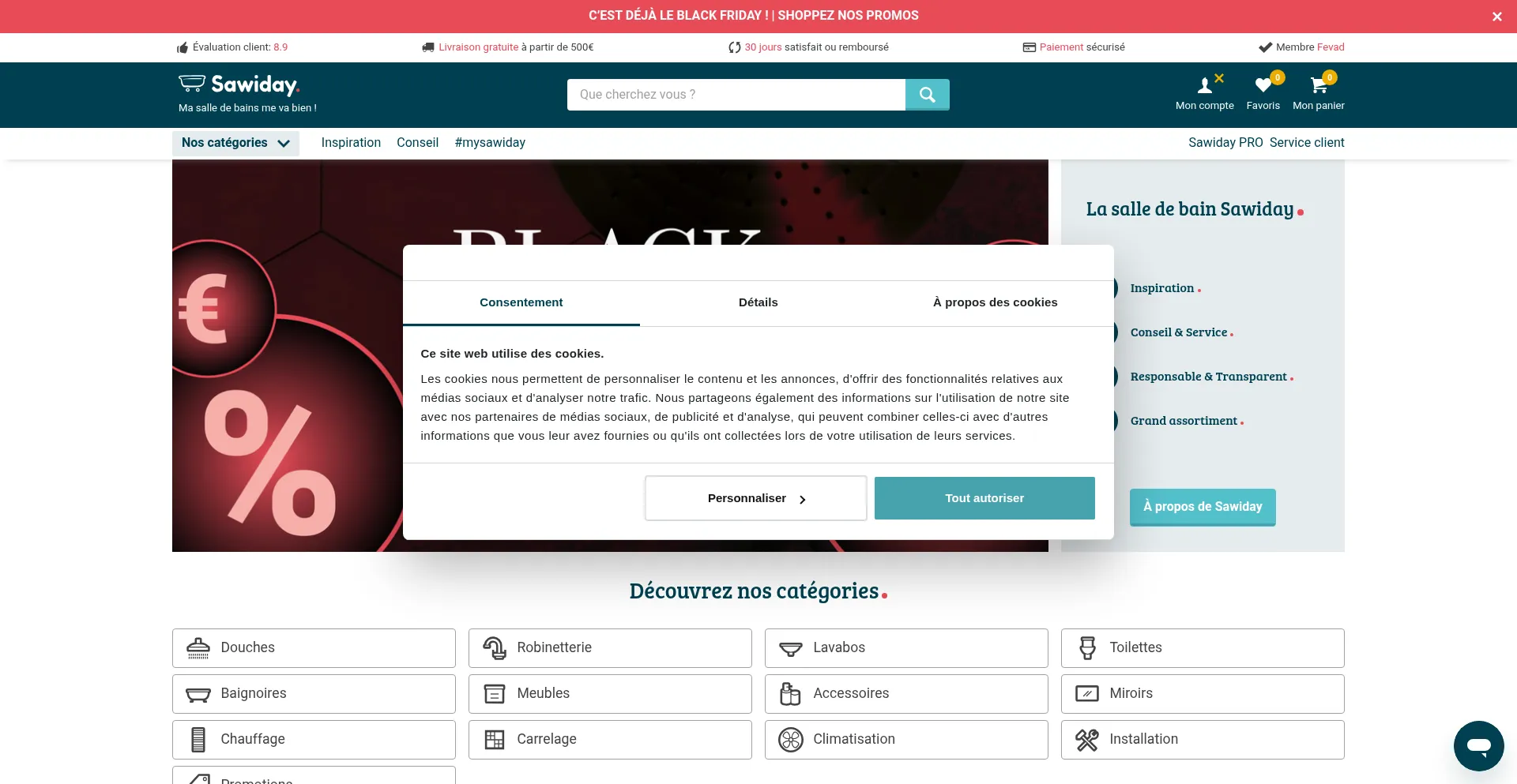Avec Sawiday, Ma Salle de Bains Me Va Bien ! Douche, Robinetterie, WC, + 50.000 Articles pour Aménager Votre Salle de Bains au Meilleur Prix !