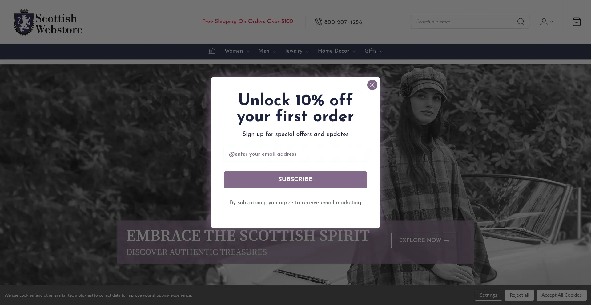 Die Website implementiert Cookie-Zustimmungsmechanismen in Compliance mit Datenschutzregulierungen wie DSGVO oder CCPA. Dies demonstriert, dass scottishwebstore.com Datenschutzstandards einhält und Benutzern Kontrolle über persönliche Datenerfassungspraktiken bietet.