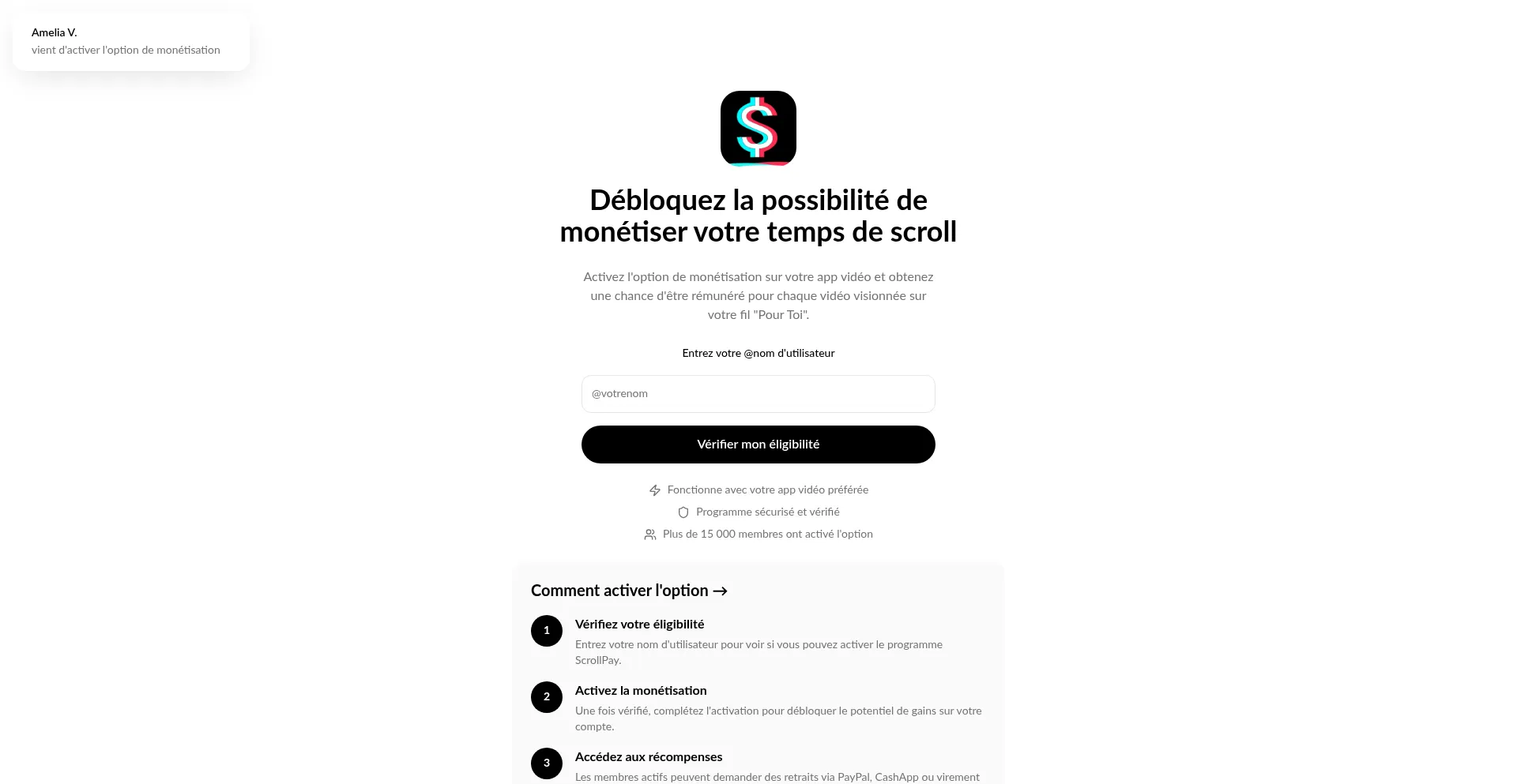 ScrollPay - Soyez payé pour regarder des vidéos courtes sur votre fil Pour Toi. Rejoignez 15 000+ scrolleurs actifs.