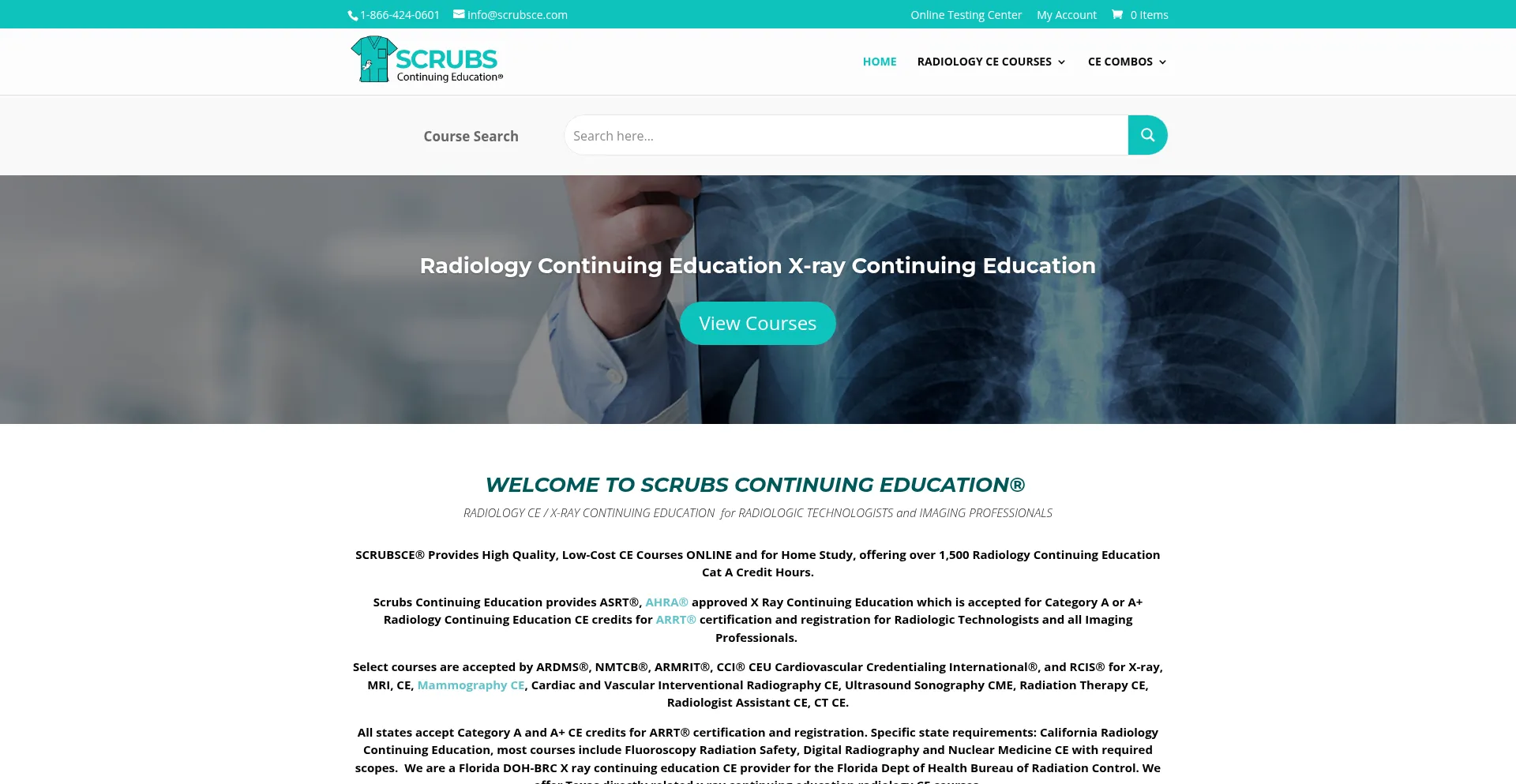 Radiology X Ray Continuing Education CE Courses TEST ONLINE. Get all 24 ARRT CE Credits. Ultrasound, Mammography, Nuclear Medicine, CT, MRI, Fluoroscopy CME
