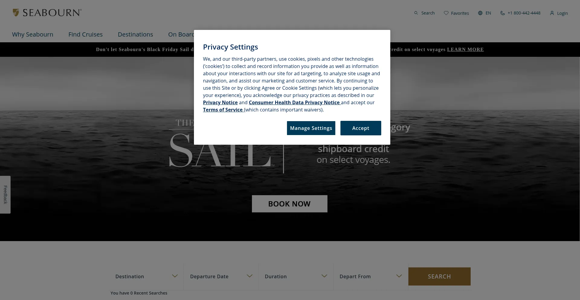 Die Website implementiert Cookie-Zustimmungsmechanismen in Compliance mit Datenschutzregulierungen wie DSGVO oder CCPA. Dies demonstriert, dass seabourn.com Datenschutzstandards einhält und Benutzern Kontrolle über persönliche Datenerfassungspraktiken bietet.