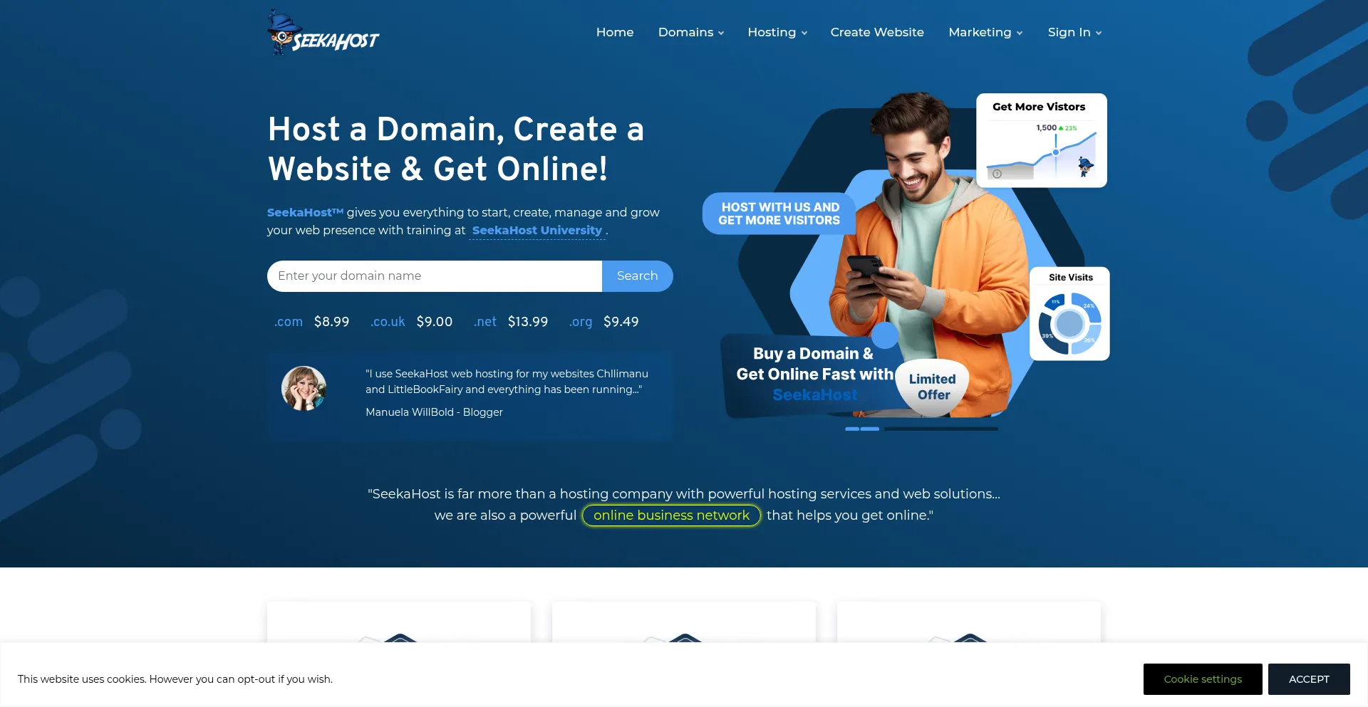 Official SeekaHost site! Web hosting services, domain registration and SSL Certificates. Managed WordPress, Shared, Dedicated & VPS. 100% uptime & 24/7 Support.