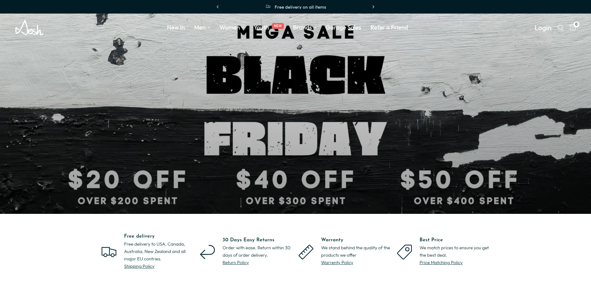 Shopping, Reliable Payment Method, Deals, Uses Free eCommerce Engine, Sports, Registration Form, Shopify Platform, Google Tag Manager, Facebook Integration