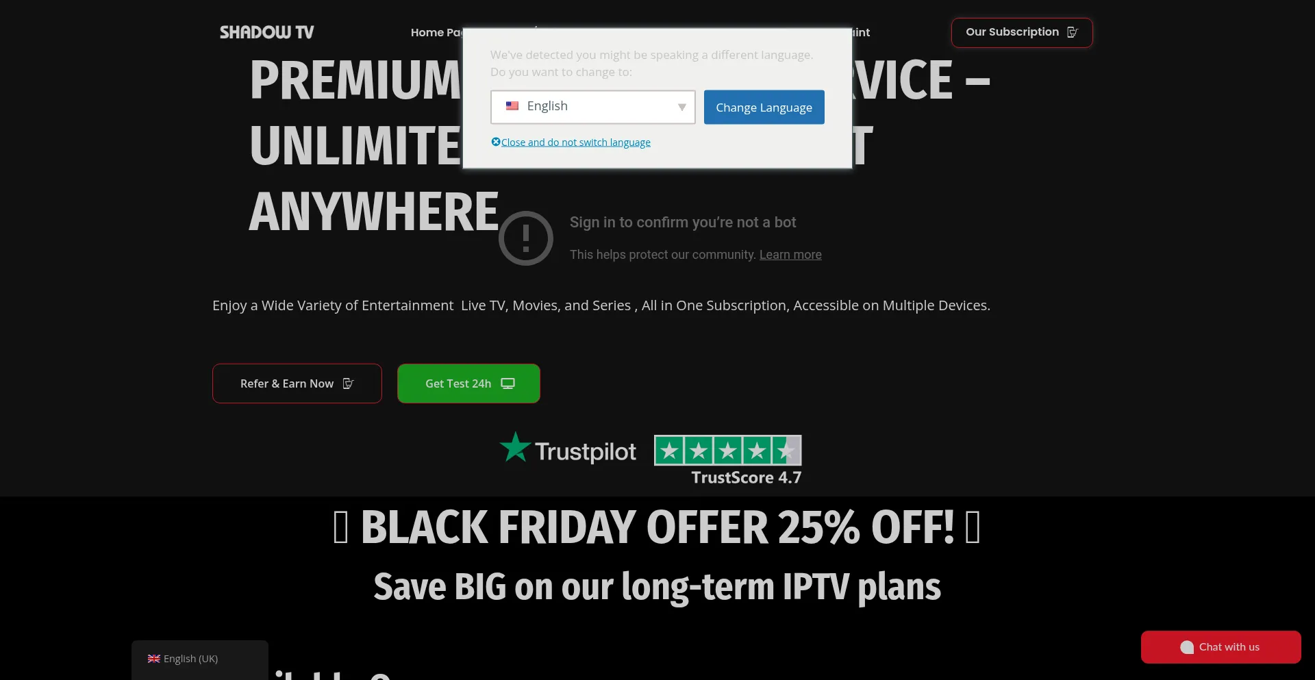 Welcome to ShadowTv! Enjoy the Best Legal IPTV Service at affordable prices! Sign up now & get access to over +23000 TV Channels.