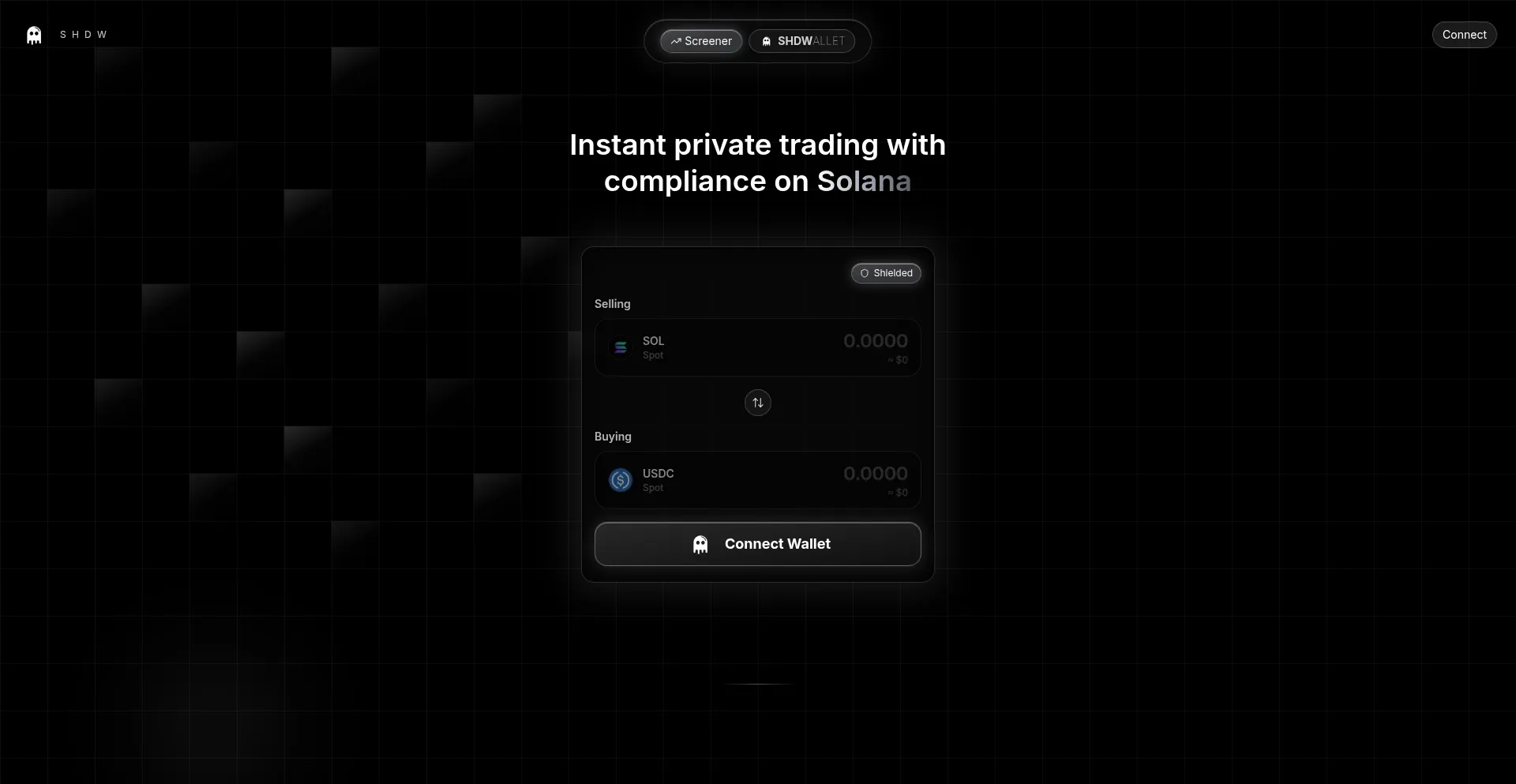 Protect your alpha. Trade with SHDW. Instant private trading with compliance on Solana.