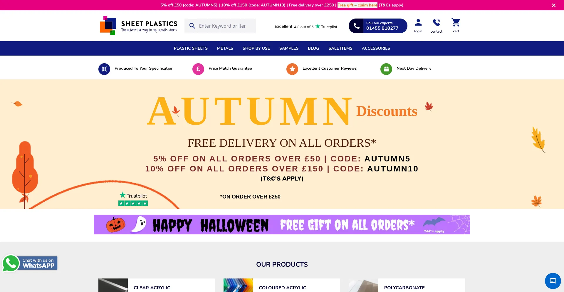 Sheet Plastics are the UK's leading stockist of plastic sheet products. All items can be cut to your exact measurements. Use code WINTER10 for 10% off all orders over £150.