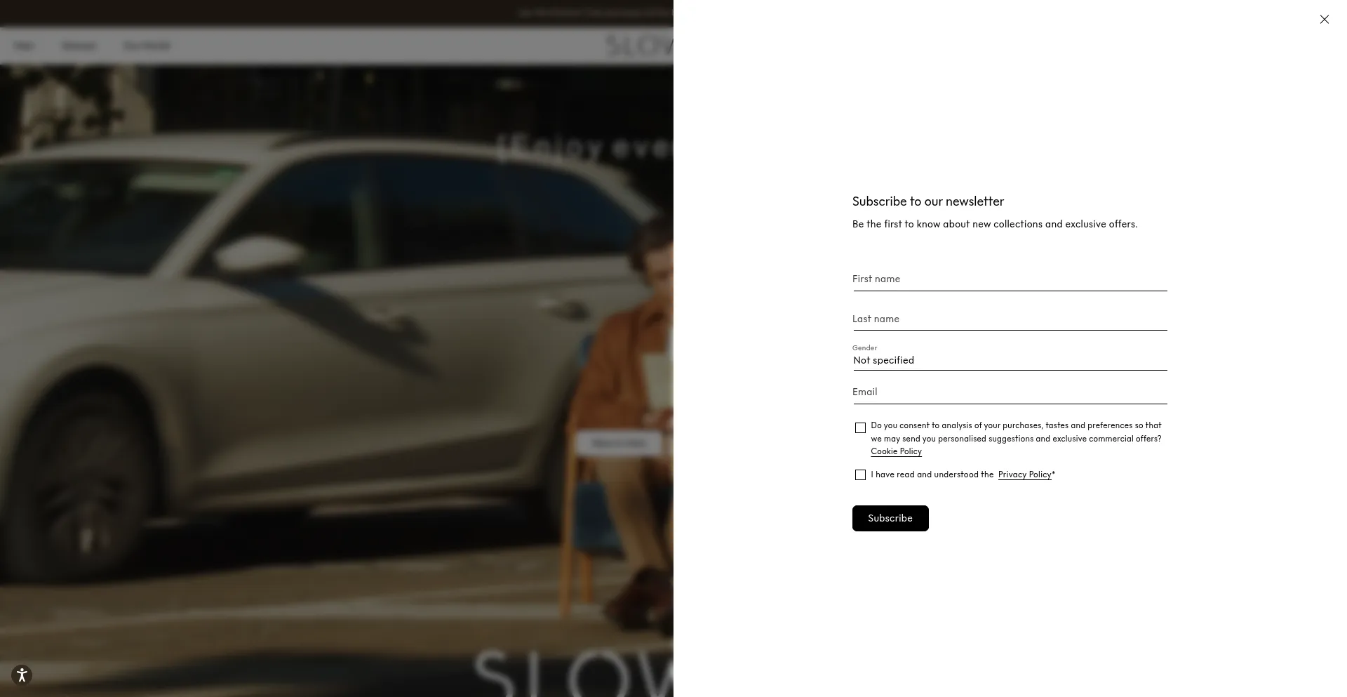 Die Website implementiert Cookie-Zustimmungsmechanismen in Compliance mit Datenschutzregulierungen wie DSGVO oder CCPA. Dies demonstriert, dass slowear.com Datenschutzstandards einhält und Benutzern Kontrolle über persönliche Datenerfassungspraktiken bietet.