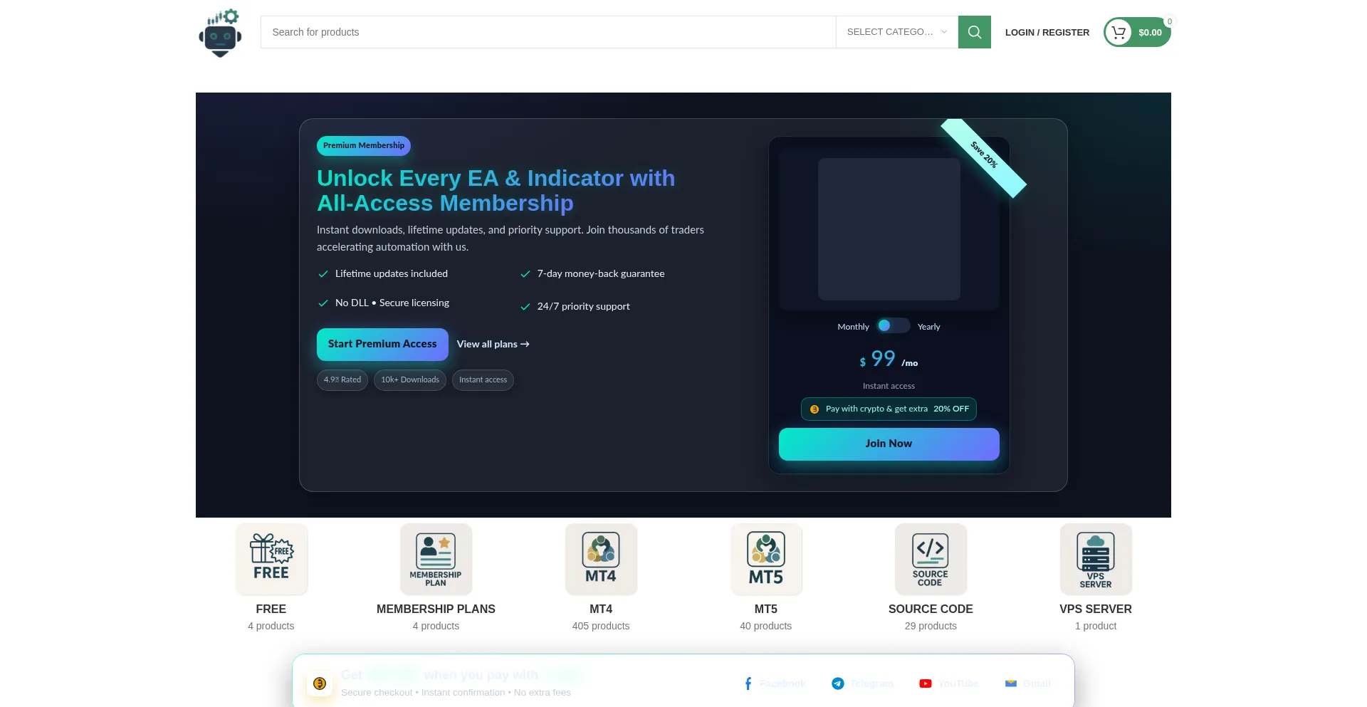 Smart EA Store offers powerful MT4/MT5 EAs, indicators & trading tools at great prices. Reliable, tested, and ready to boost your forex trading.