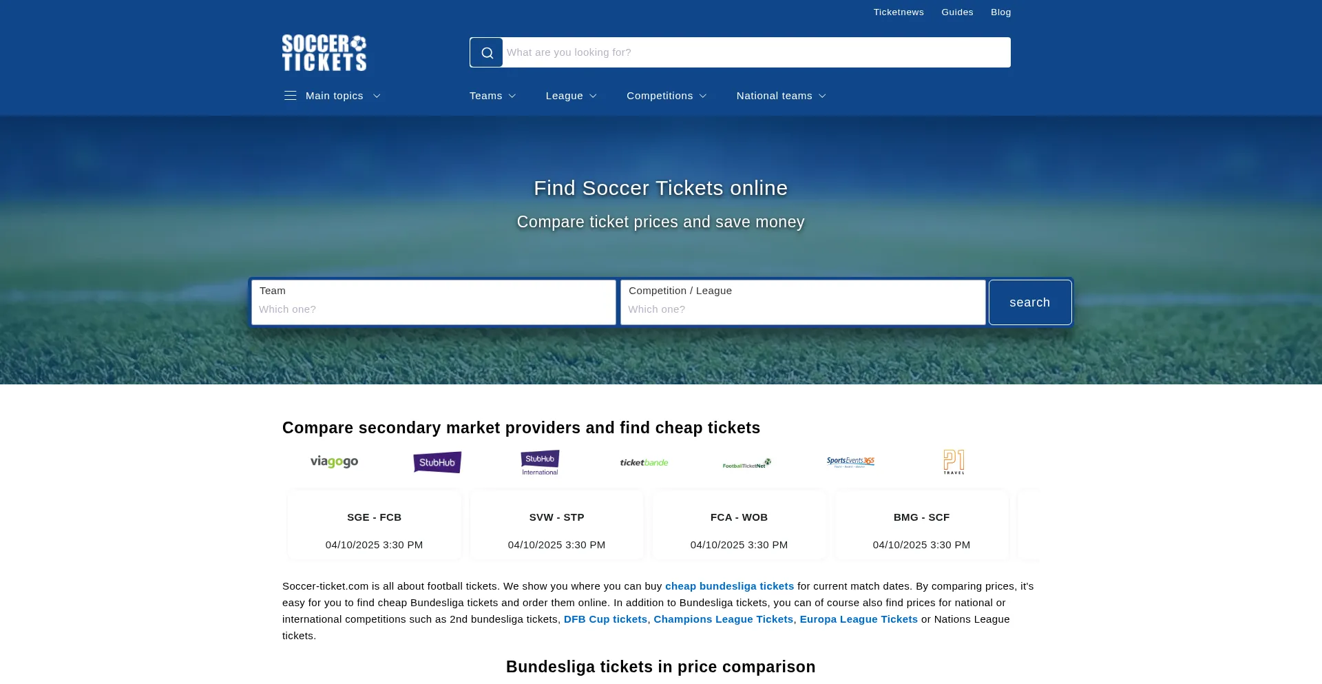 Buy Soccer Tickets quickly and easily online ✅ Cheap prices ✅ Online tickets ✅ Secondary market ➤ compare relevant marketplaces prices now