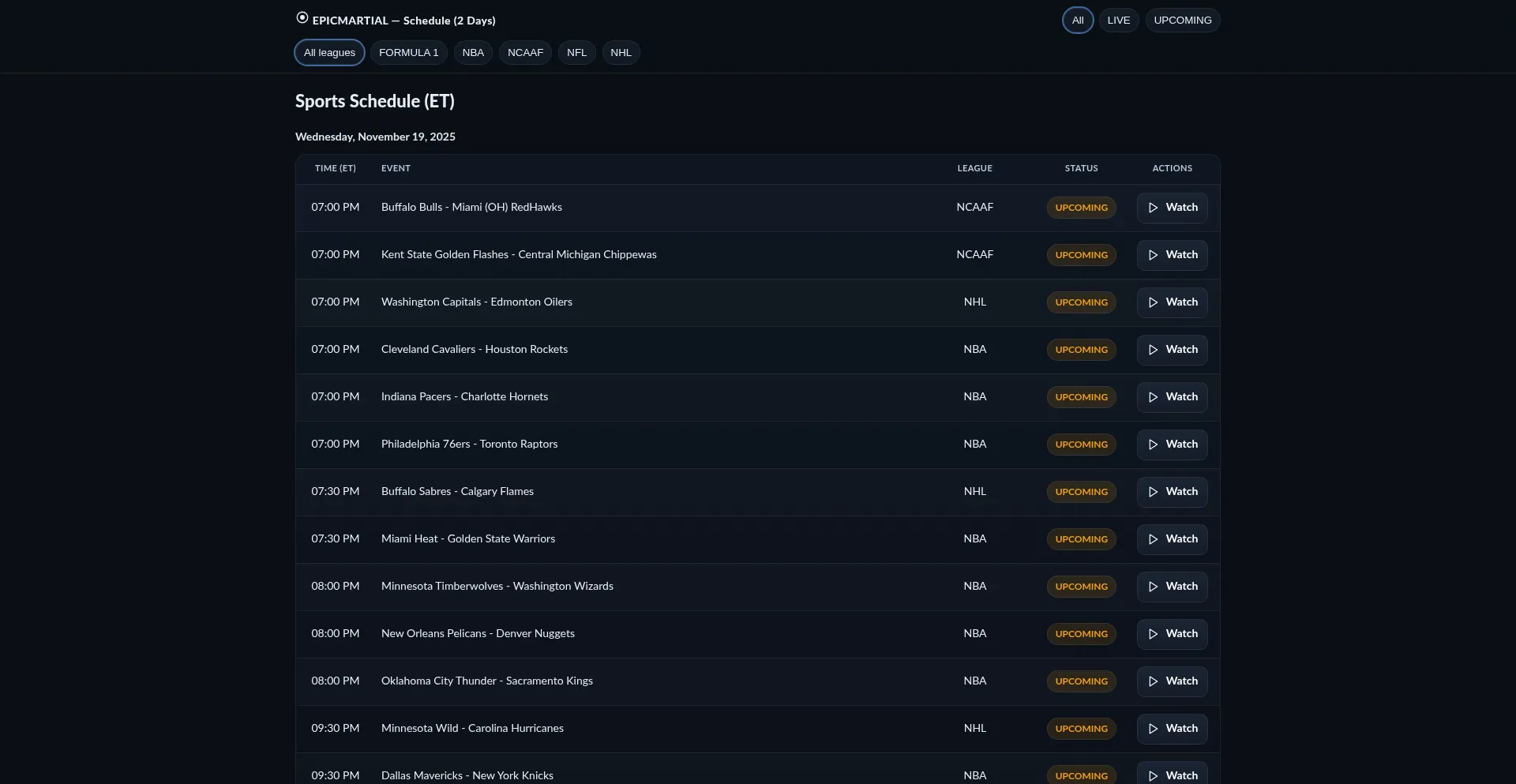 Sports Schedule — 2 Days (ET)