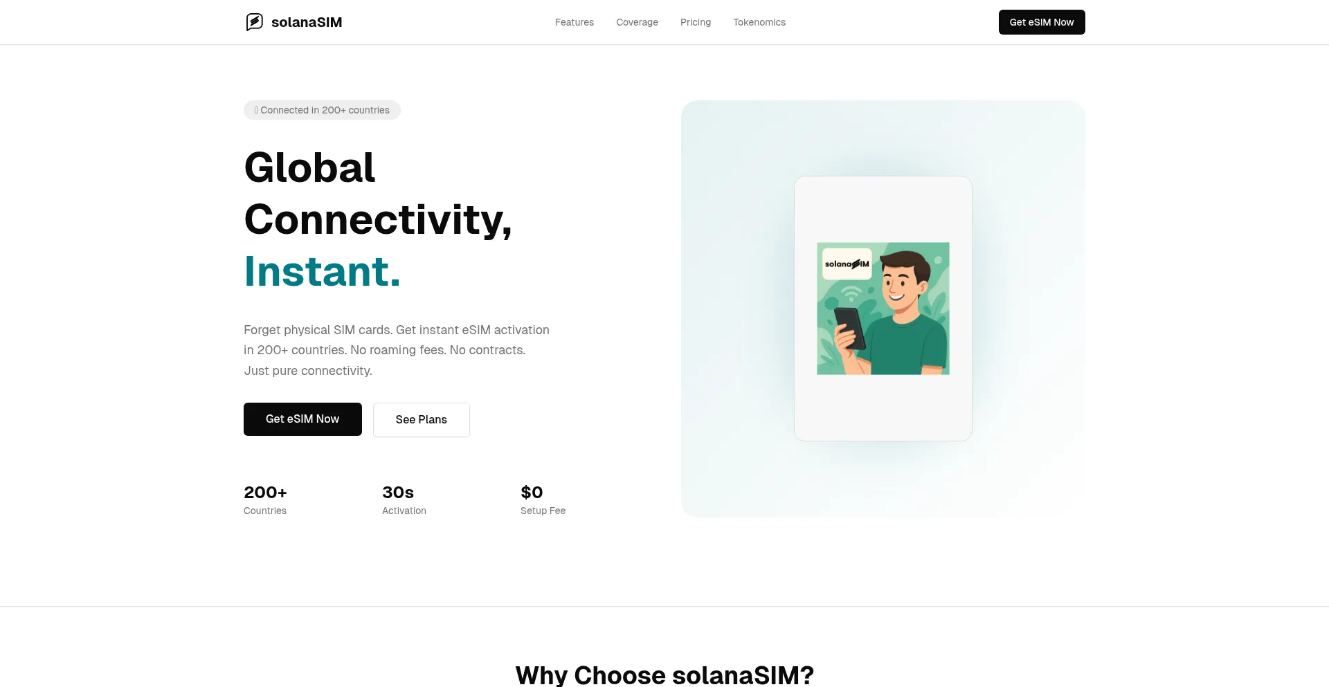 Instant eSIM connectivity in 200+ countries. No contracts, no complications. Stay connected with solanaSIM.