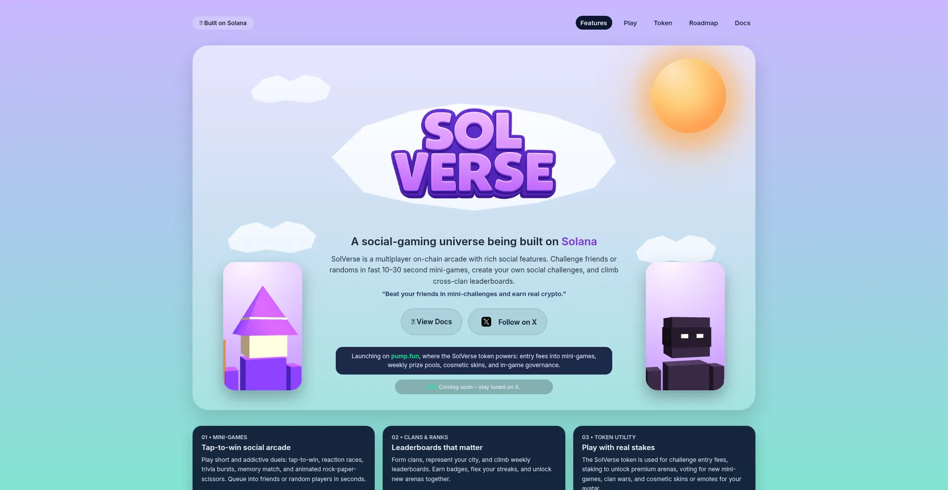 SolVerse is a multiplayer on-chain arcade with rich social features.