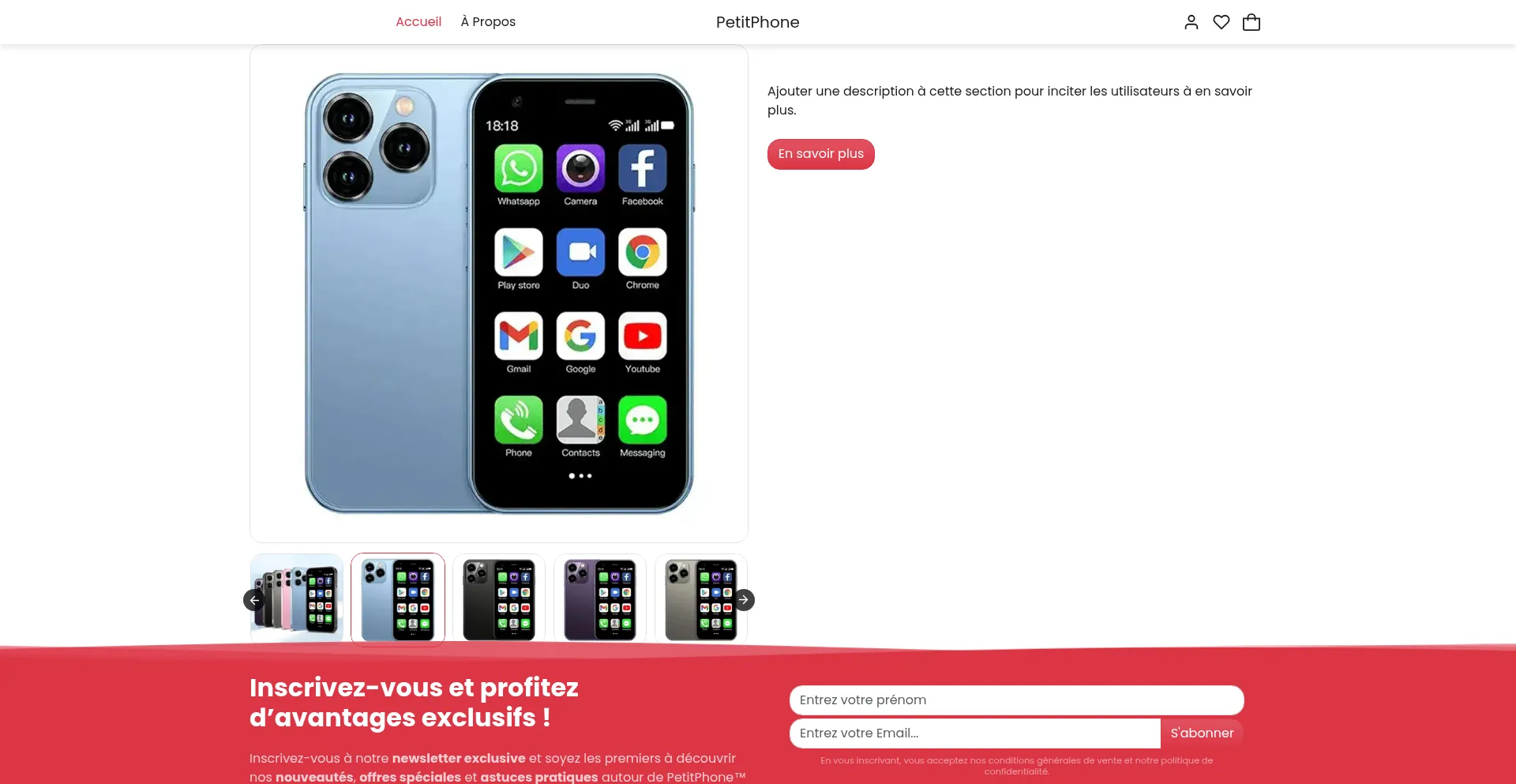 Bienvenue sur PetitPhone™. Le PetitPhone™ est le mini smartphone compact et pratique qui vous accompagne partout. Découvrez PetitPhone™, profitez de la livraison gratuite...