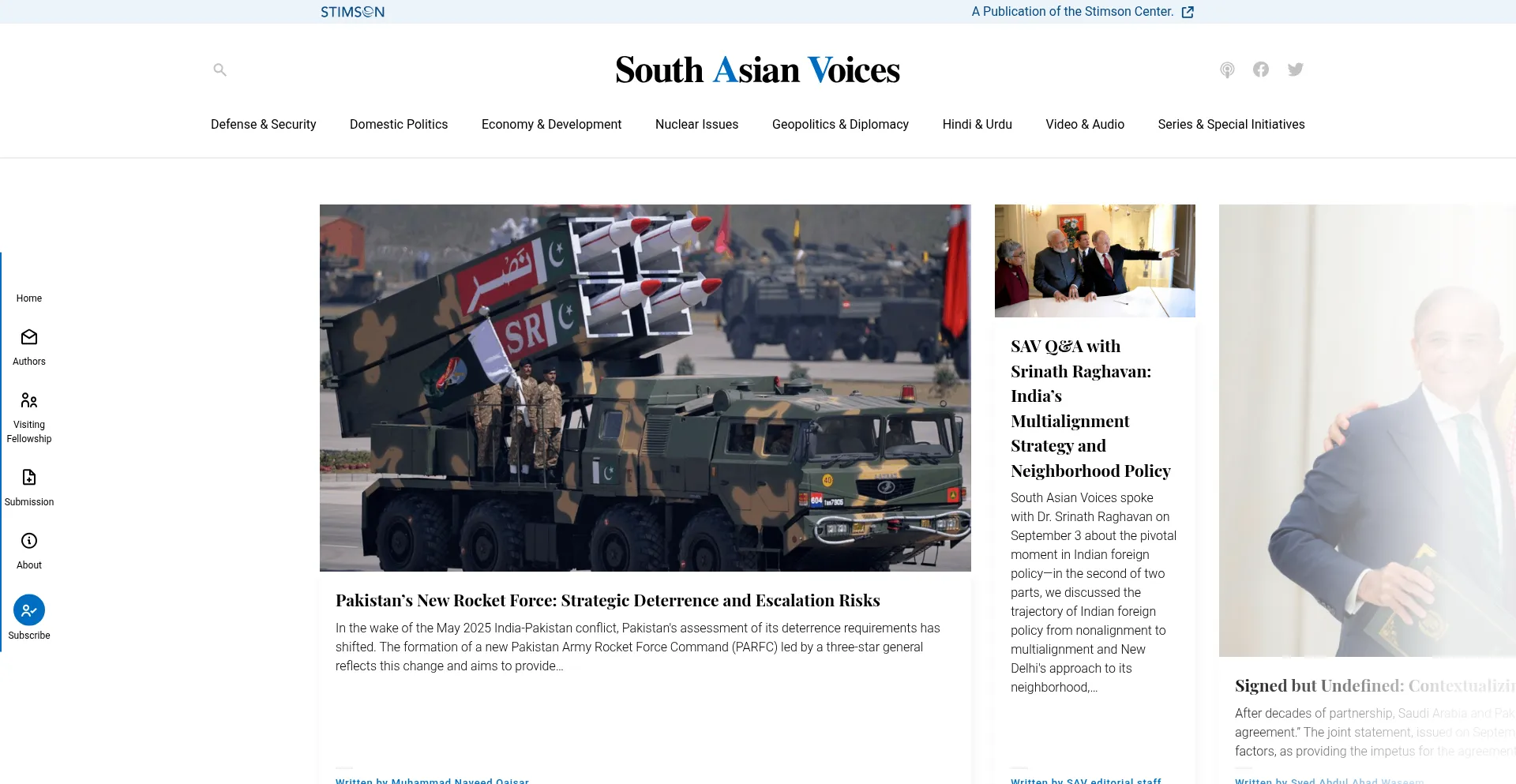 South Asian Voices is a leading online policy platform for strategic analysis on South Asia, hosted by the Stimson Center in Washington, D.C.