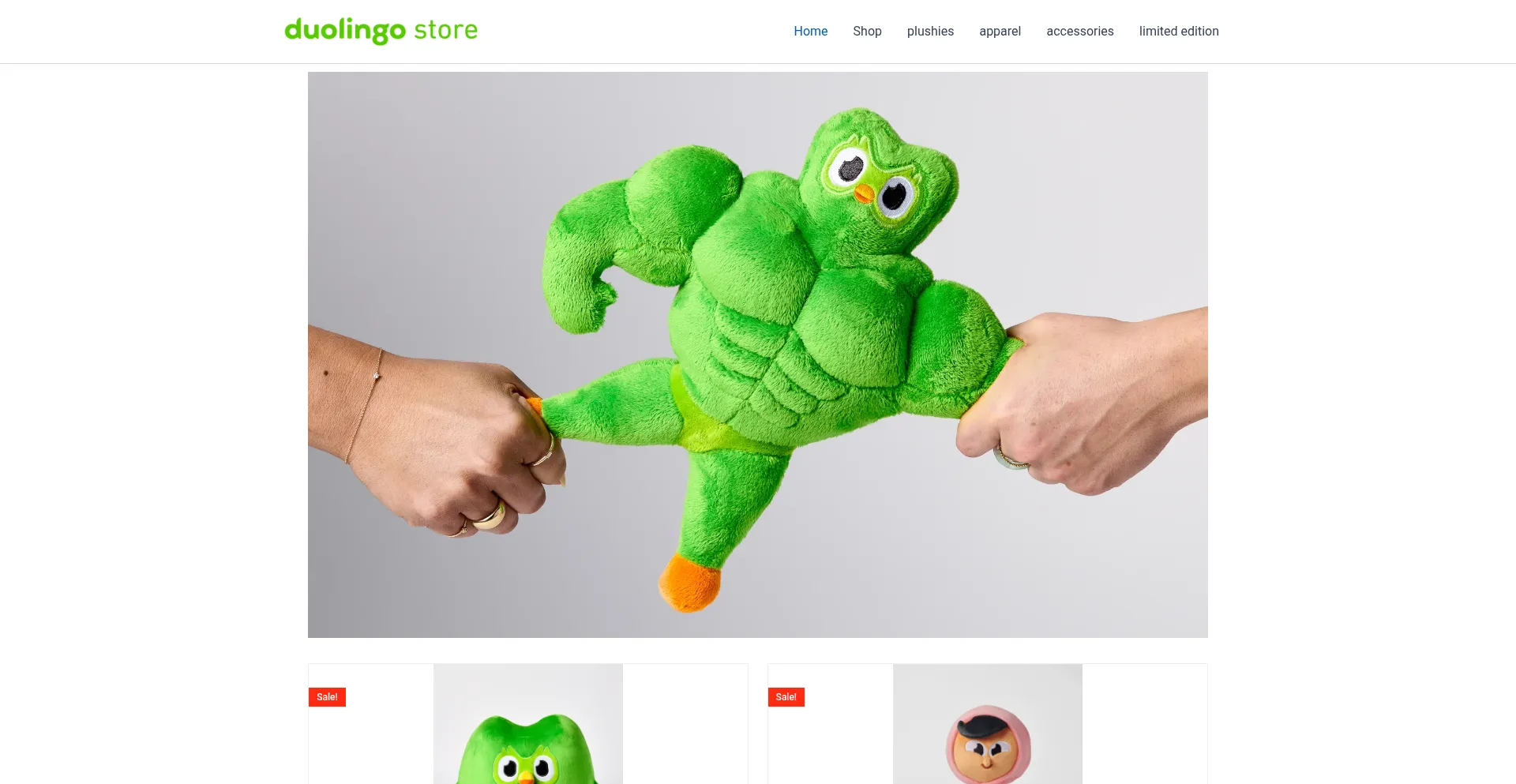 Shop official Duolingo merch including plushies, apparel, and accessories. High-quality, fun designs to celebrate your love for language learning.