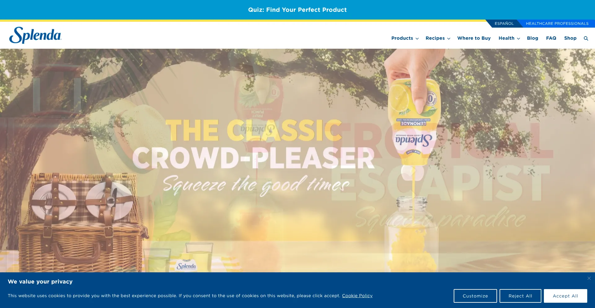 Die Website implementiert Cookie-Zustimmungsmechanismen in Compliance mit Datenschutzregulierungen wie DSGVO oder CCPA. Dies demonstriert, dass splenda.com Datenschutzstandards einhält und Benutzern Kontrolle über persönliche Datenerfassungspraktiken bietet.
