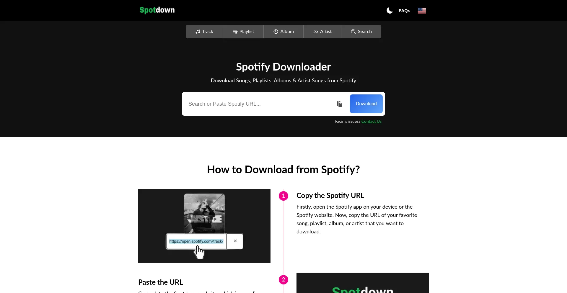 Spotdown is an online Spotify Downloader that allows you to download Spotify Songs, Playlists, Albums, and Artists on any device.