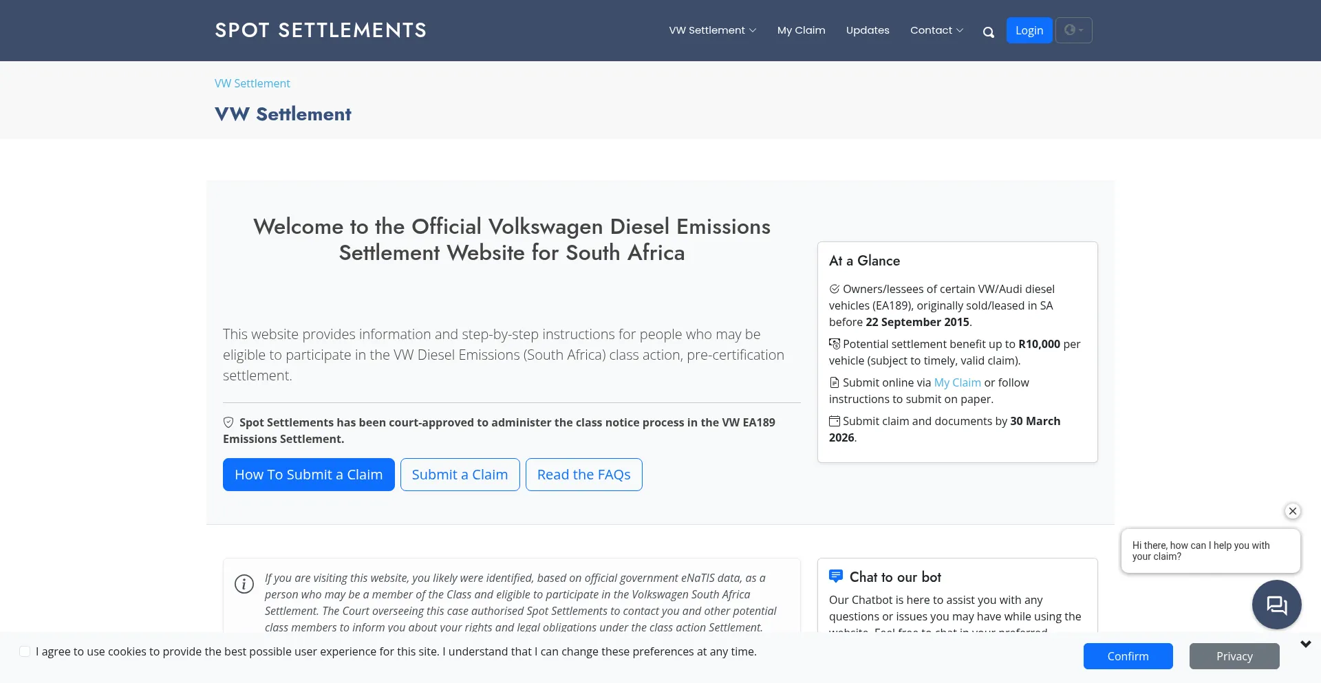 This website provides information and step-by-step instructions for people who may be eligible to participate in the VW Diesel Emissions (South Africa) class action, pre-certifi...