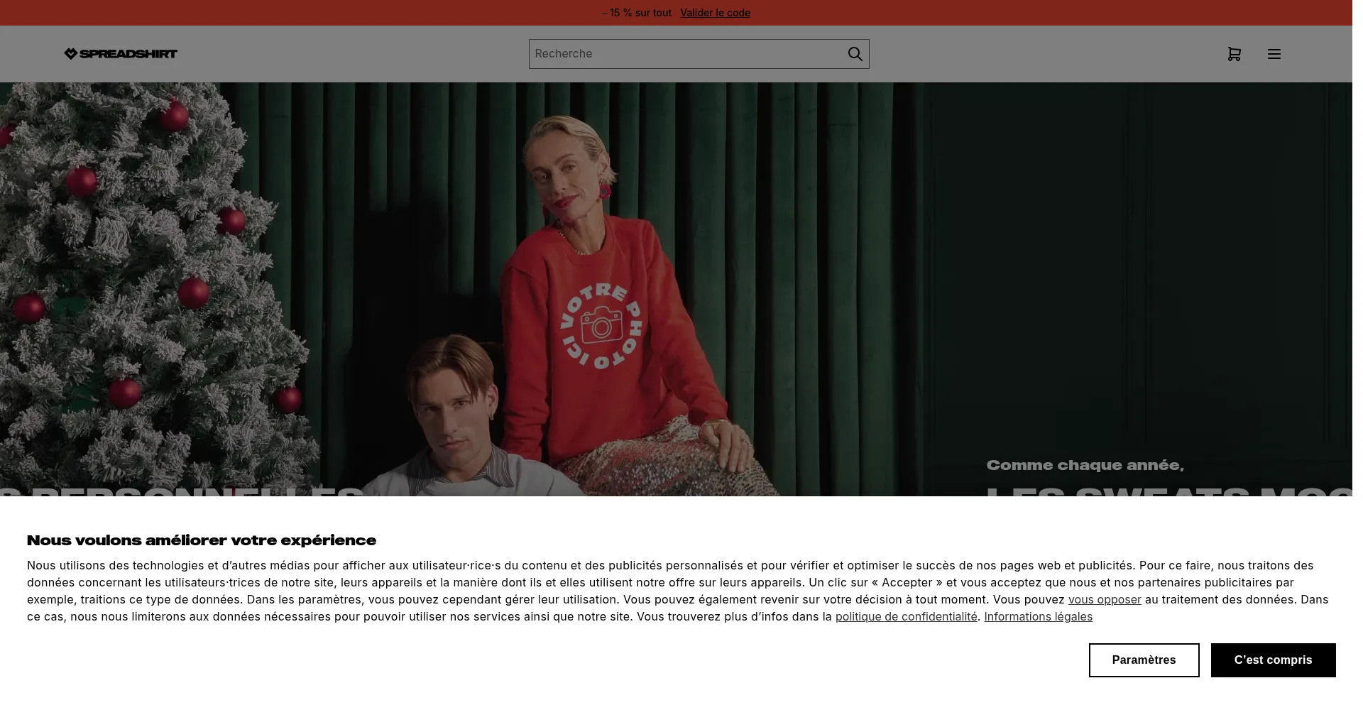 Die Website implementiert Cookie-Zustimmungsmechanismen in Compliance mit Datenschutzregulierungen wie DSGVO oder CCPA. Dies demonstriert, dass spreadshirt.be Datenschutzstandards einhält und Benutzern Kontrolle über persönliche Datenerfassungspraktiken bietet.