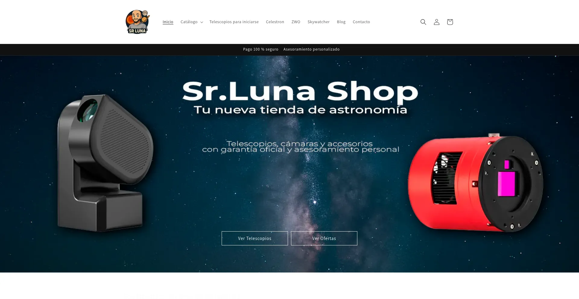 Tienda online de astronomía y astrofotografía. Telescopios, monturas, cámaras y accesorios con envío en España. Asesoramiento de Sr Luna.