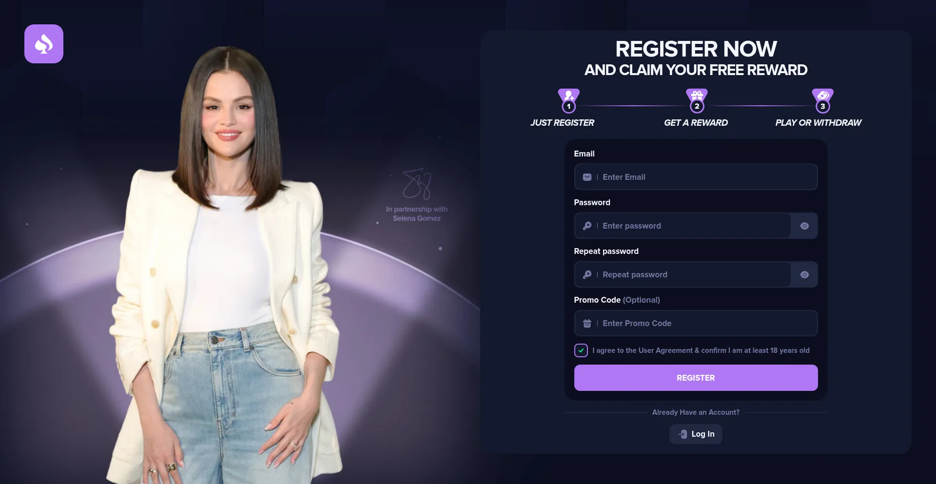 18+, Cryptocurrency, Registration Form, Casino, Facebook Integration, Young Domain